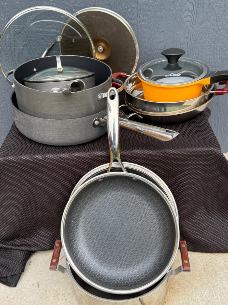 14 piece Pots & Pans - Hexclad 11”Fry Pan - Culinary Essentials All Clad Great quality pieces.