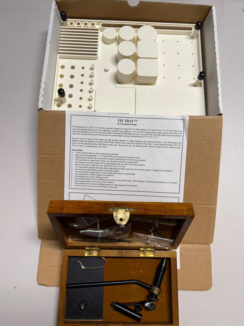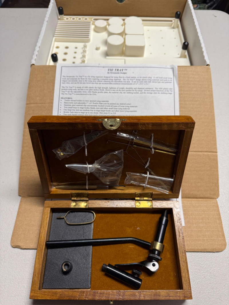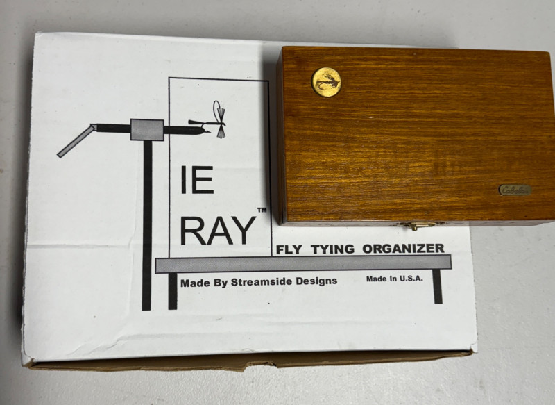 Cabela's Fly Tying Kit in Wood Box & Tie Ray Fly Tying Organizer Cabela's Fly Tying Kit in Wood Box never used. Tools still in plastic wrap. NIB Tie Ray Fly Tying Organizer