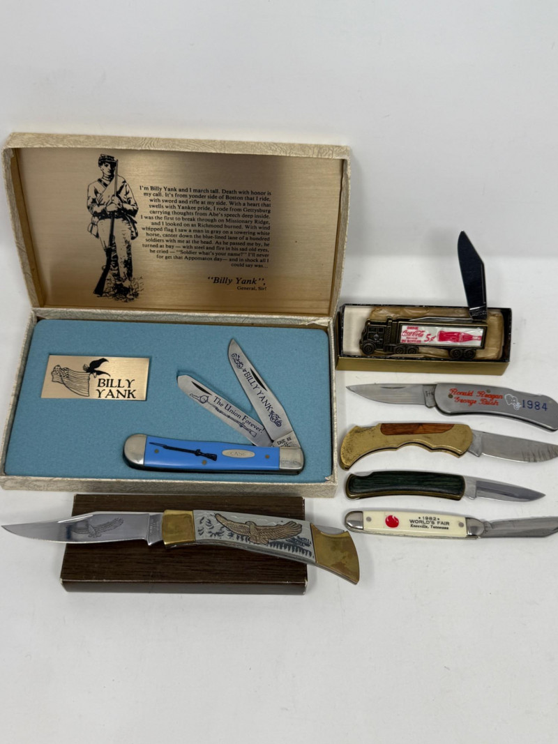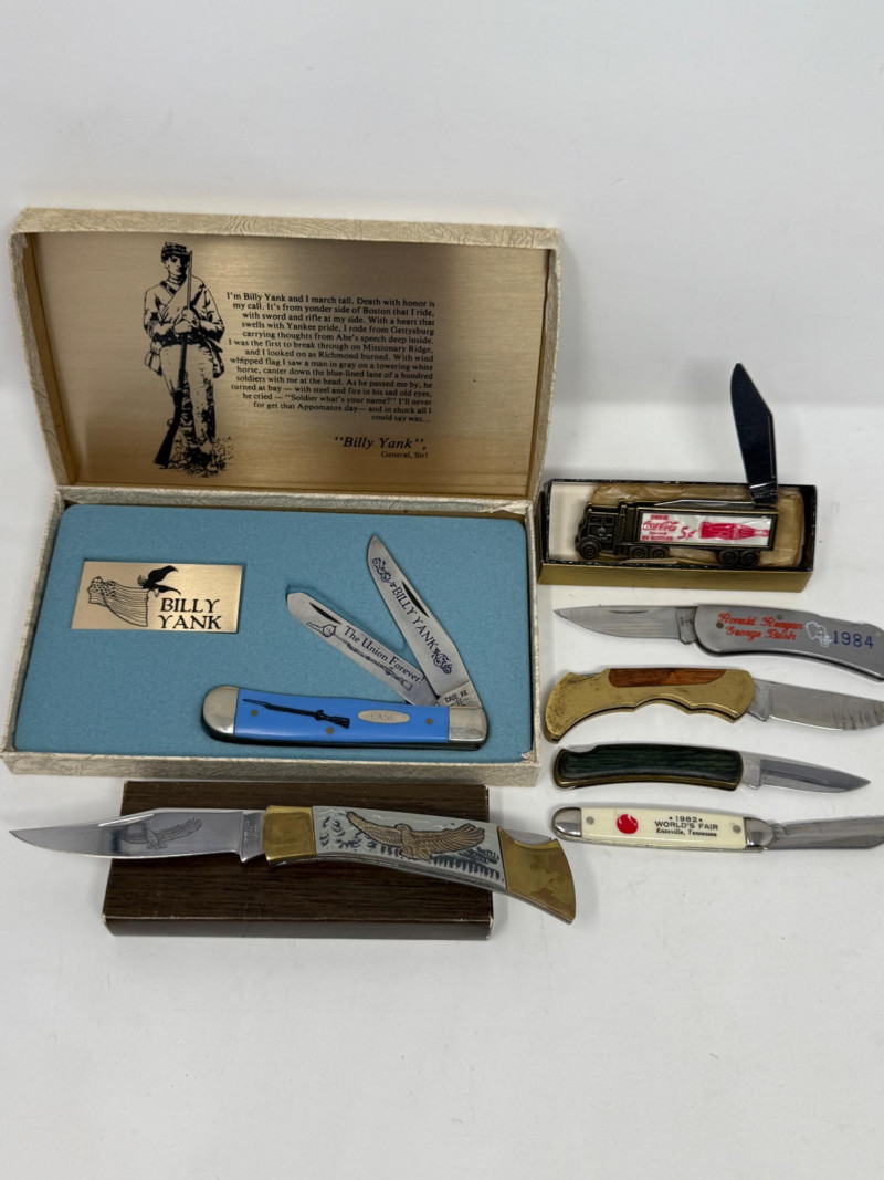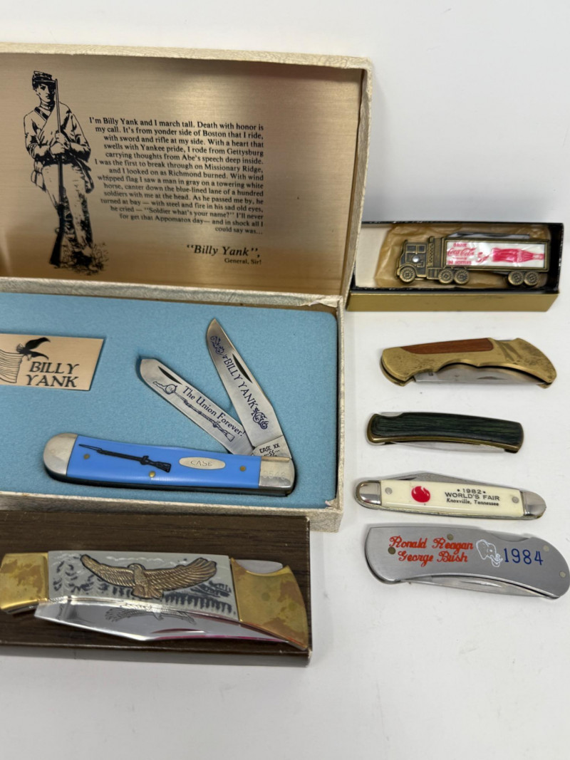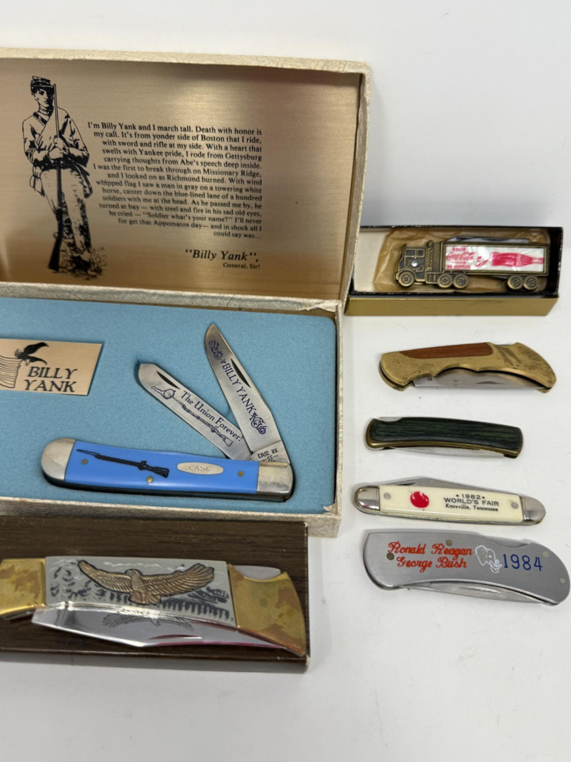 Lot # 224 - (7) Pocket Knives - Case Billy Yank & Reagan/Bush - Trucker & 4 More