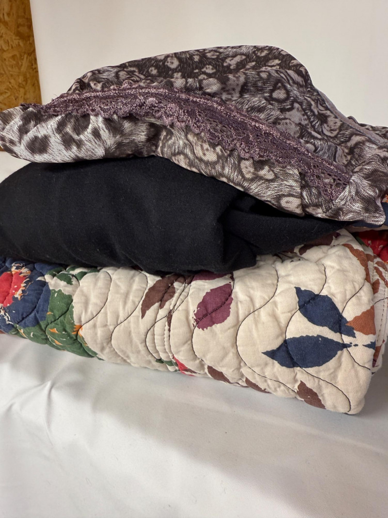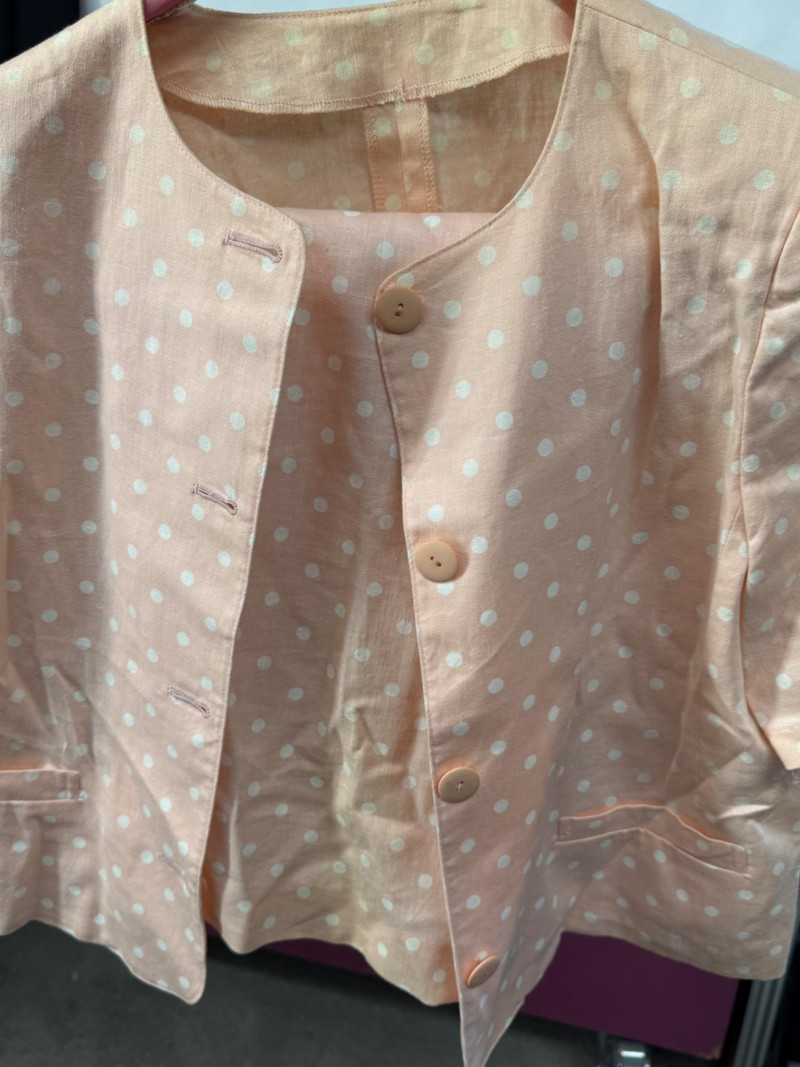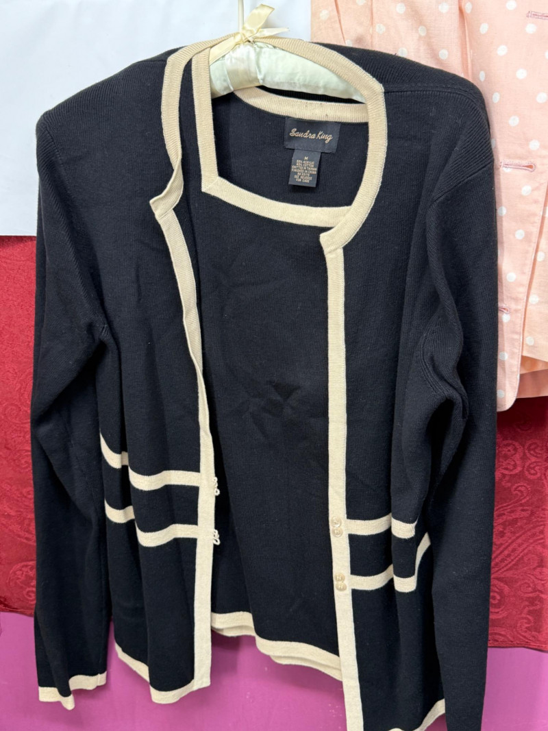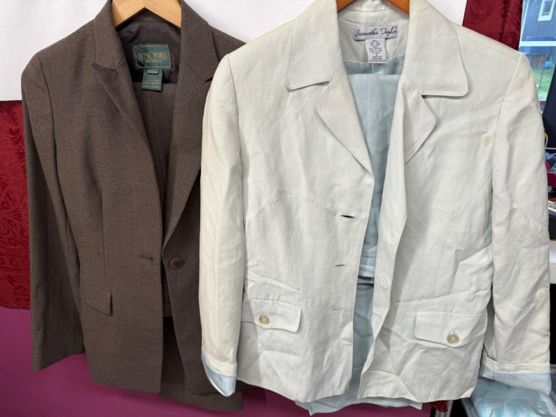 10 Two piece suit skirt and pants sets. Plus a few extra pieces. Most came out of dry cleaning bags.