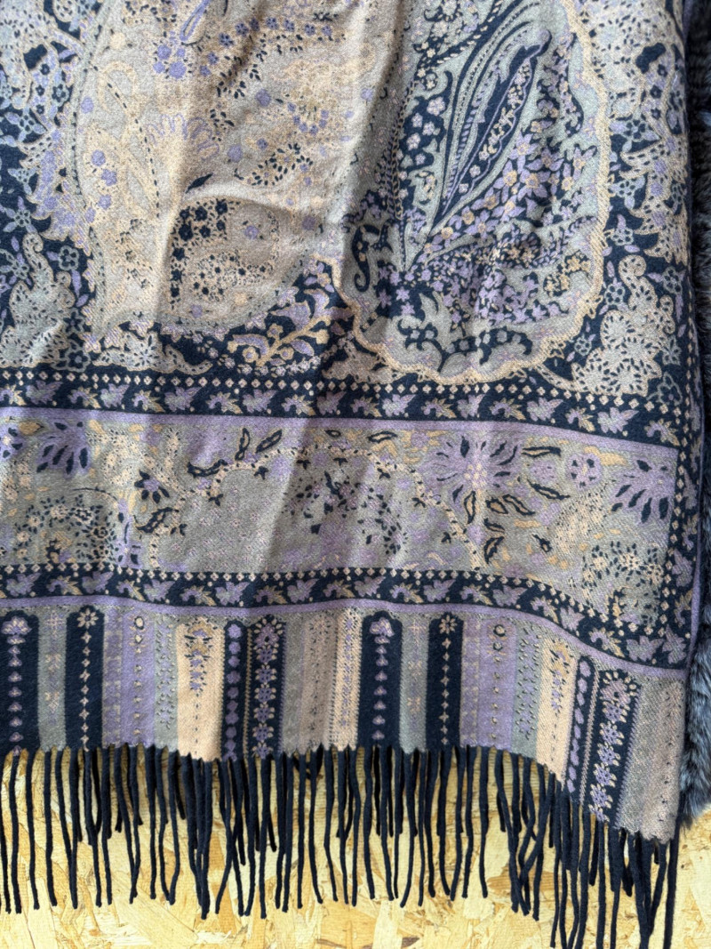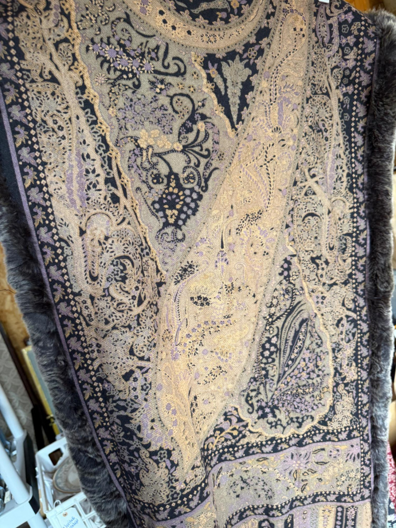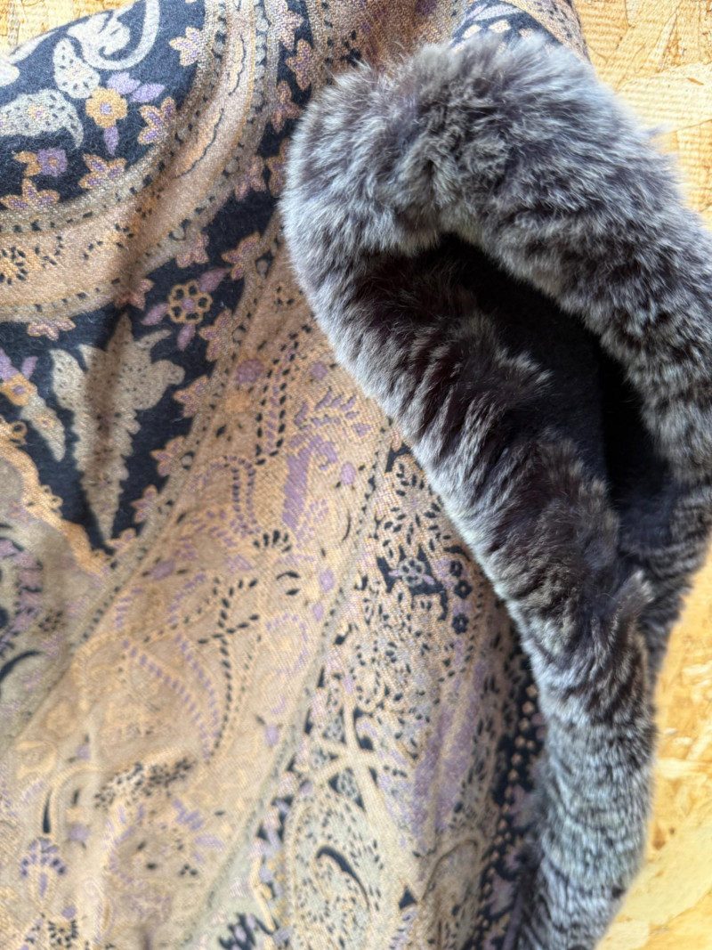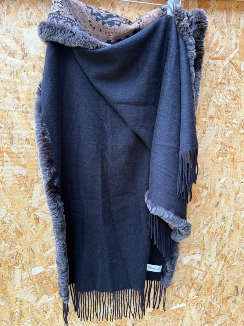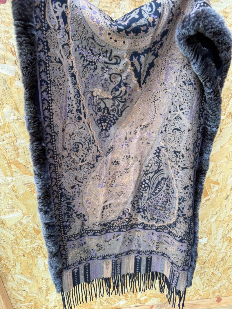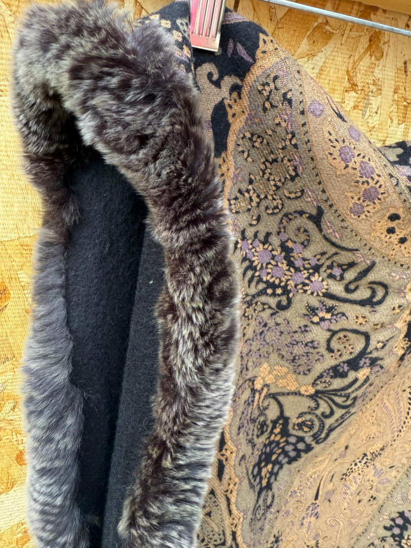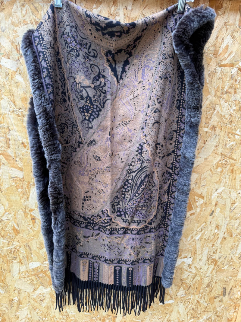 Pellacci Wool shawl with fur edge.