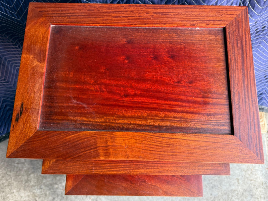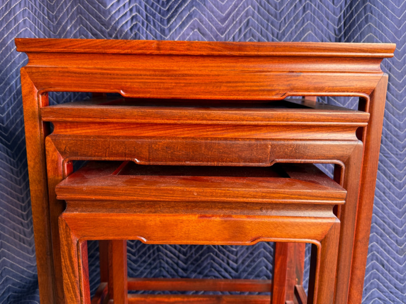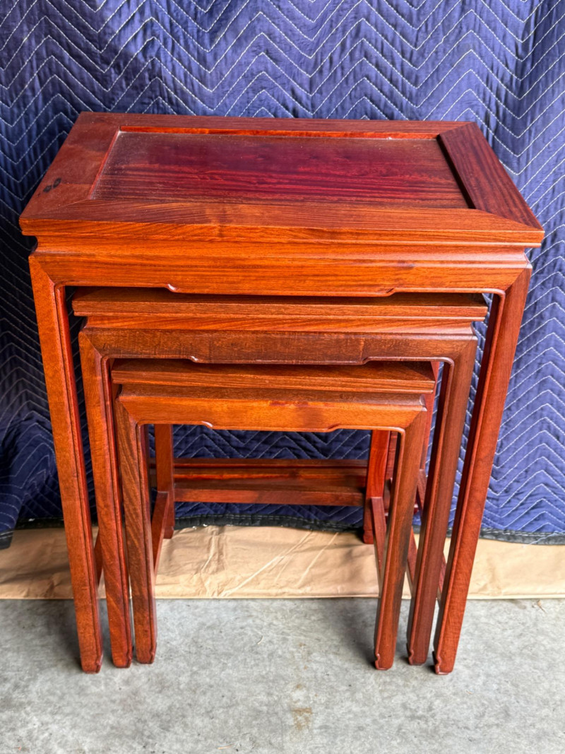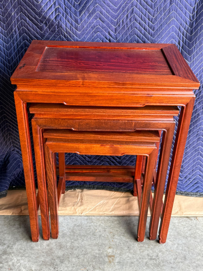 Set of 3 Rosewood Nesting Tables 20x14x26” largest 14x11x19” smallest