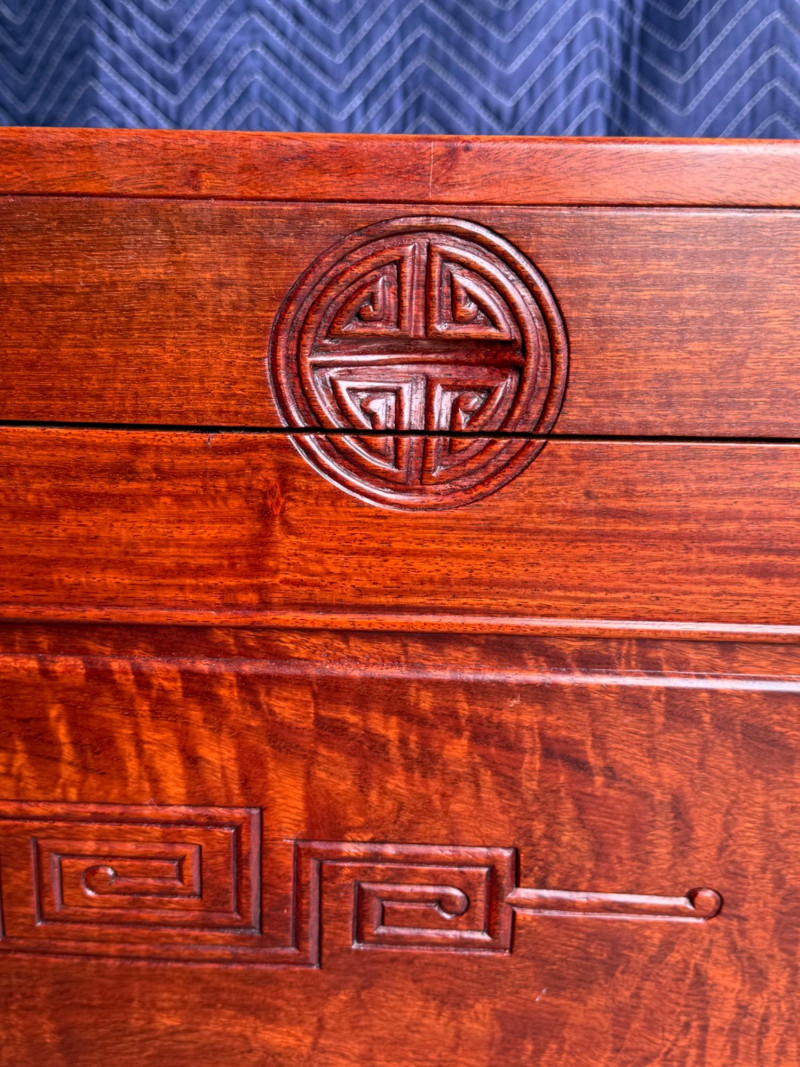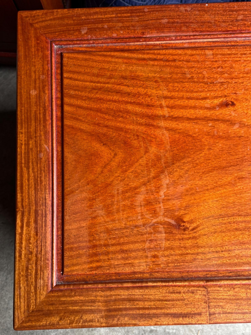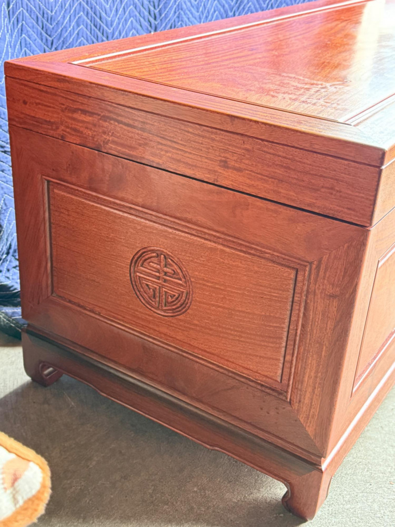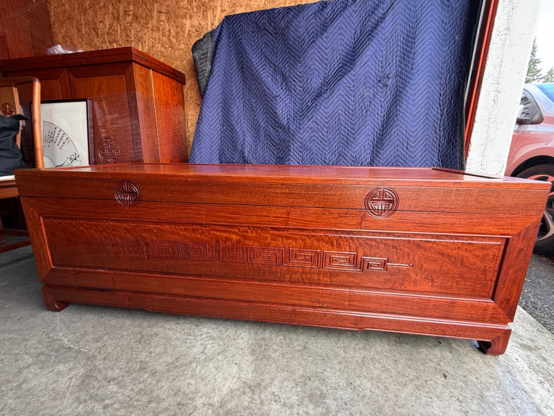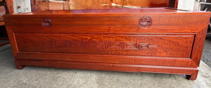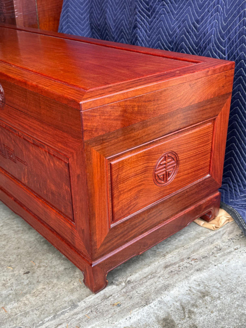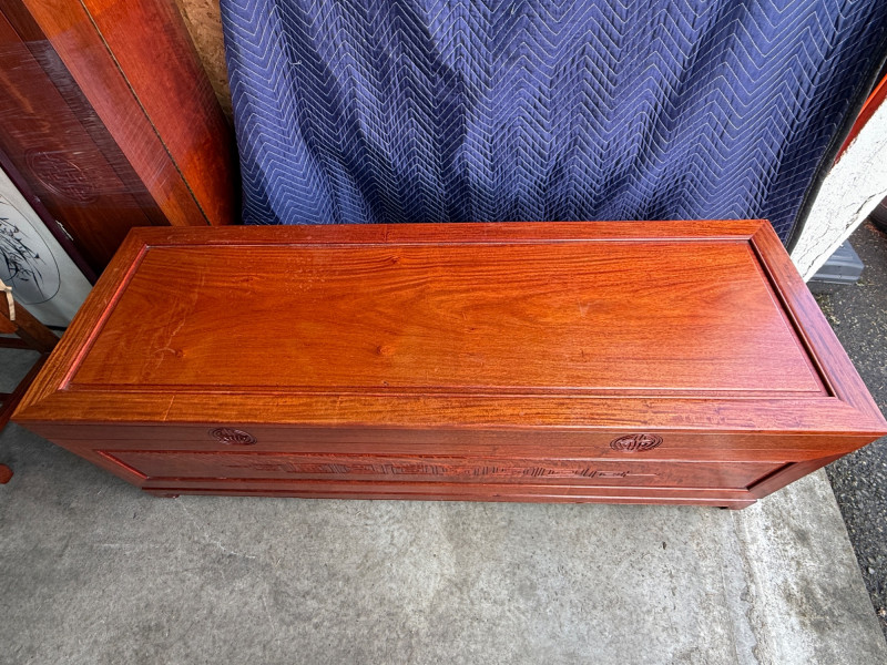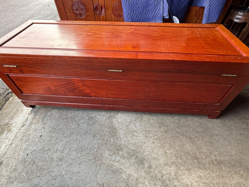 Rosewood Full Length Bed Chest 58x5x20x20” Some water spotting on top.