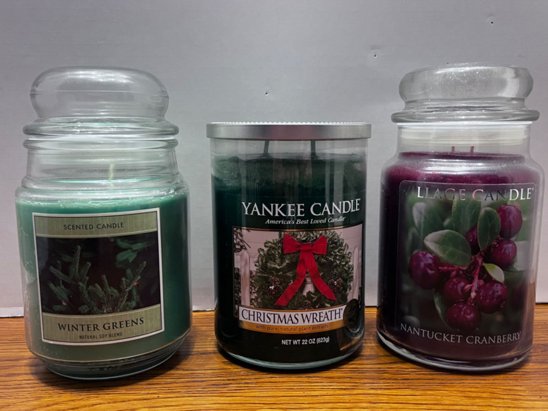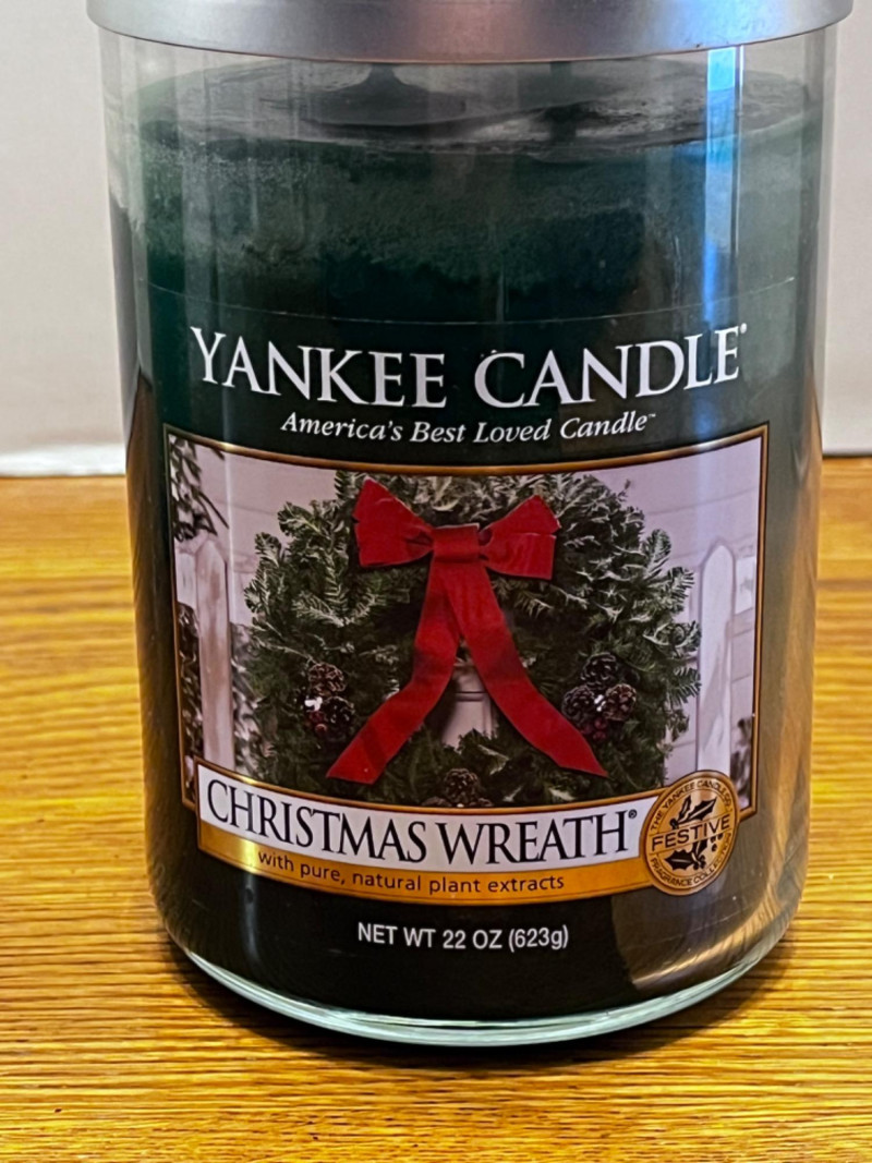 Christmas Candles Christmas Wreath Yankee two wick candle Nantucket Cranberry Village Candle two wick candle.