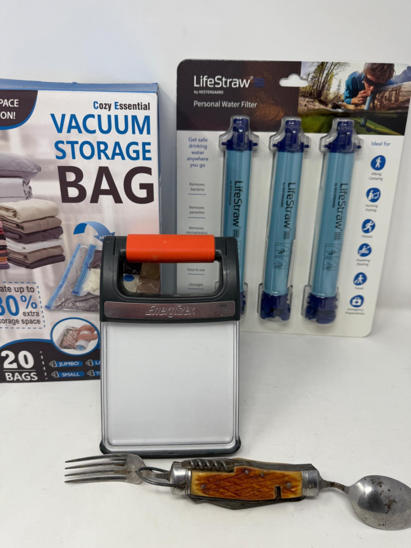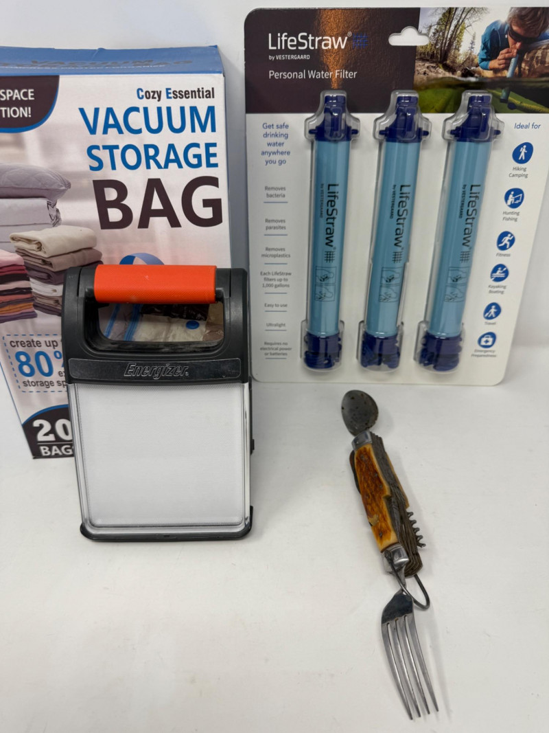 Lot # 291 - Personal Water Filters- Vac Storage Bags - Hobo Knife- Light Panel
