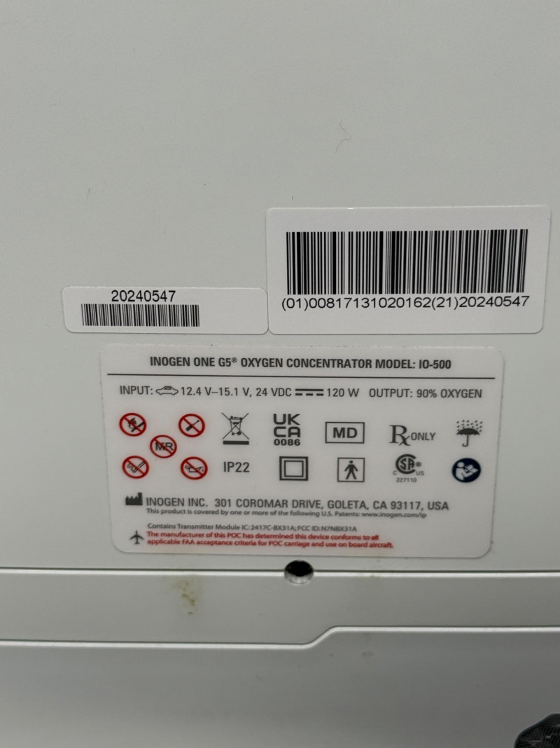 InogenOne G5 Portable Oxygen Concentrator, tested, works! Model #IO-500