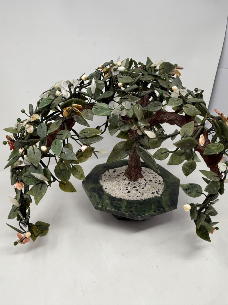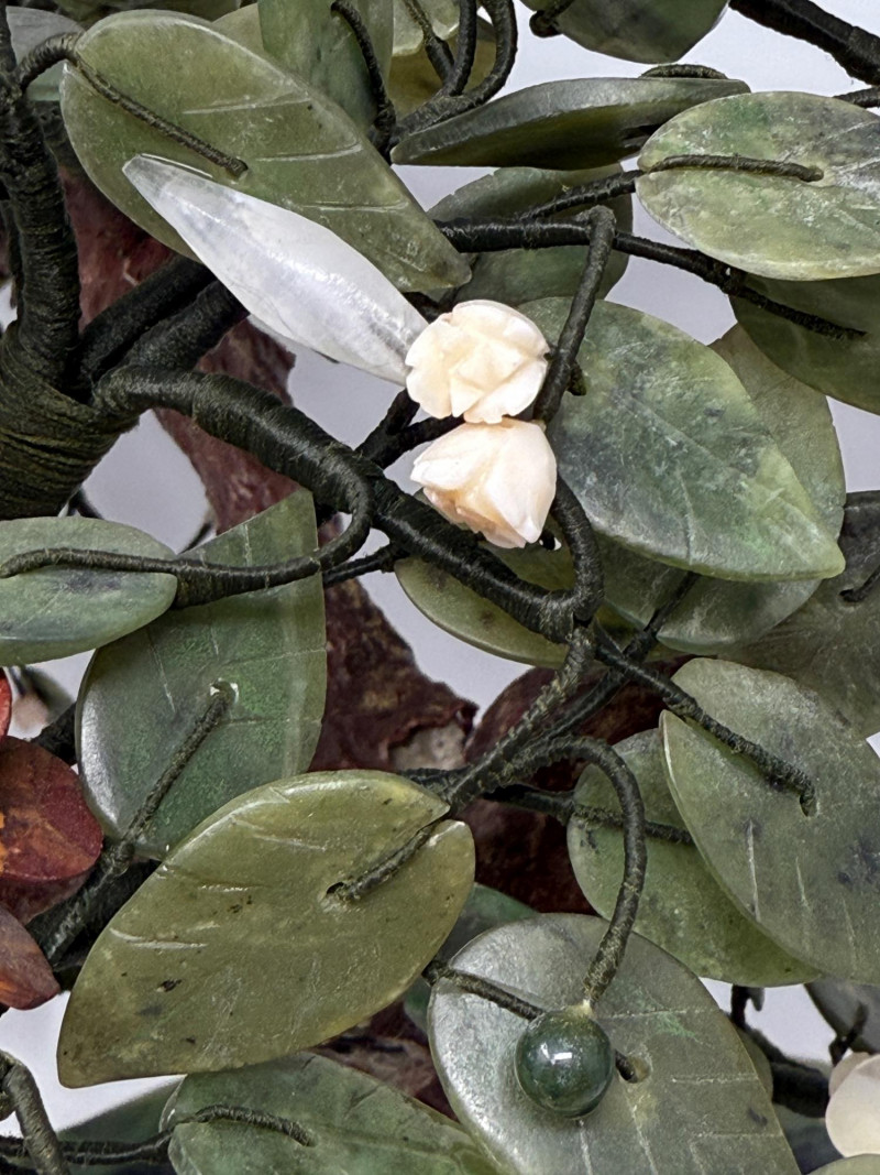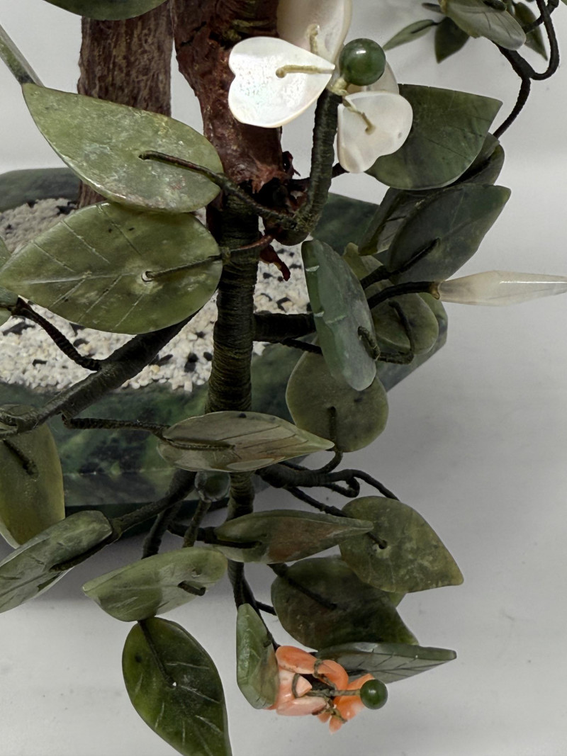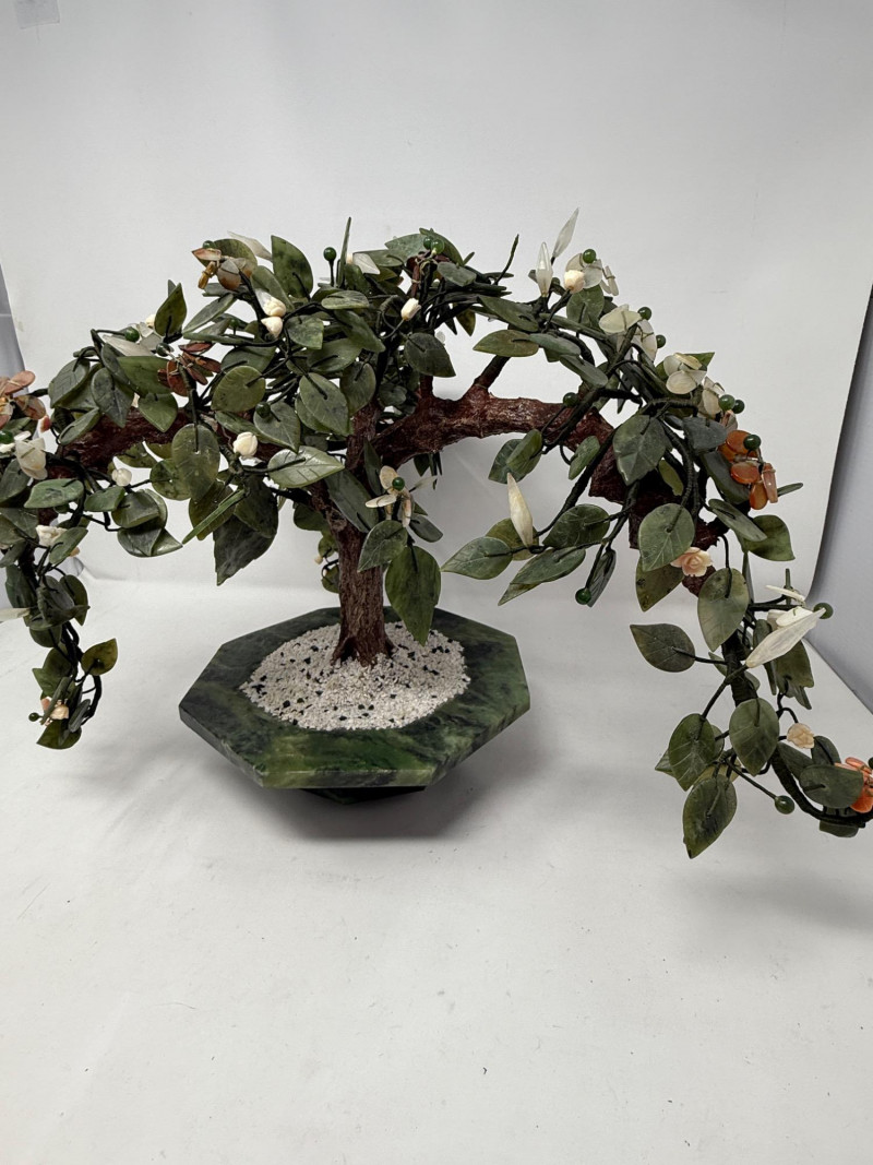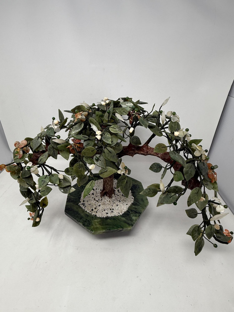 3 Branch Jade and Coral Bonsai Tree in Jade Base. 13x13x20”