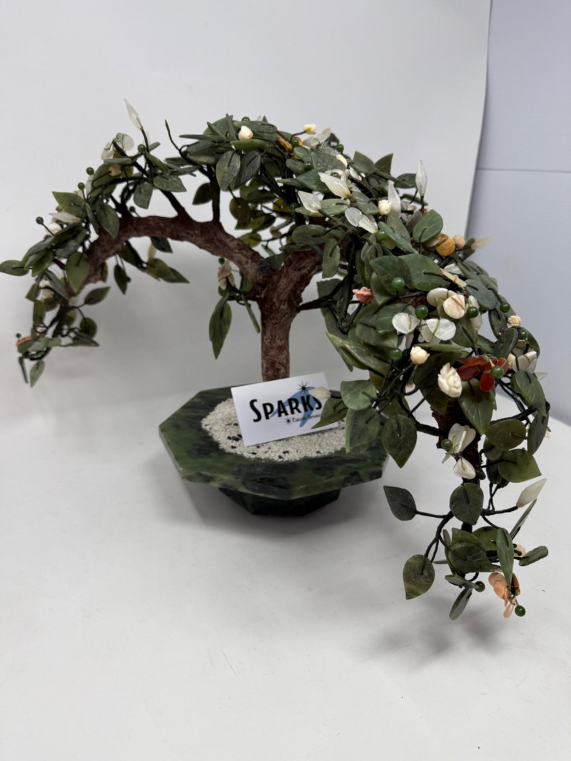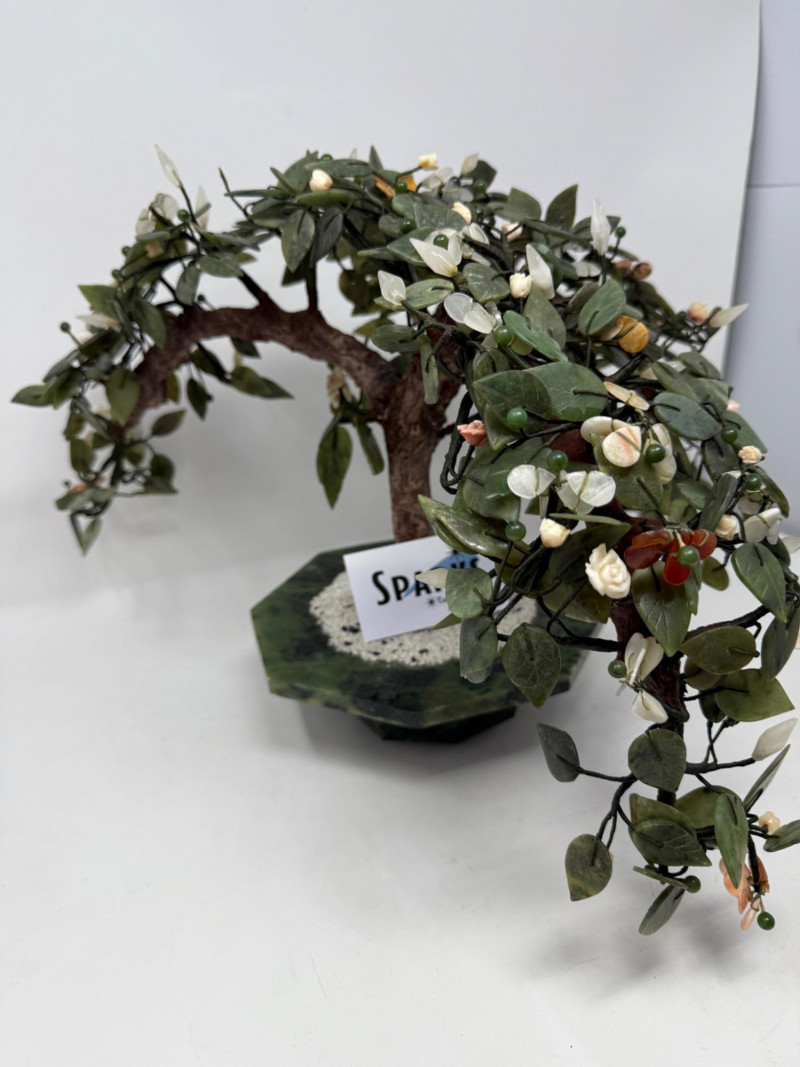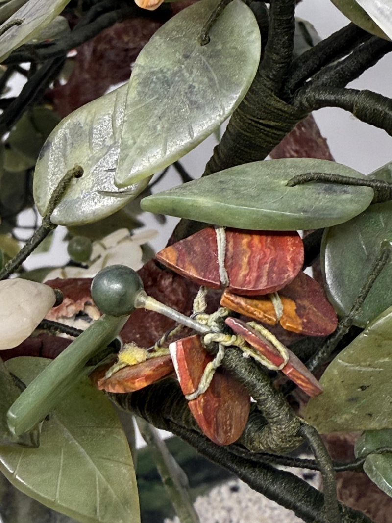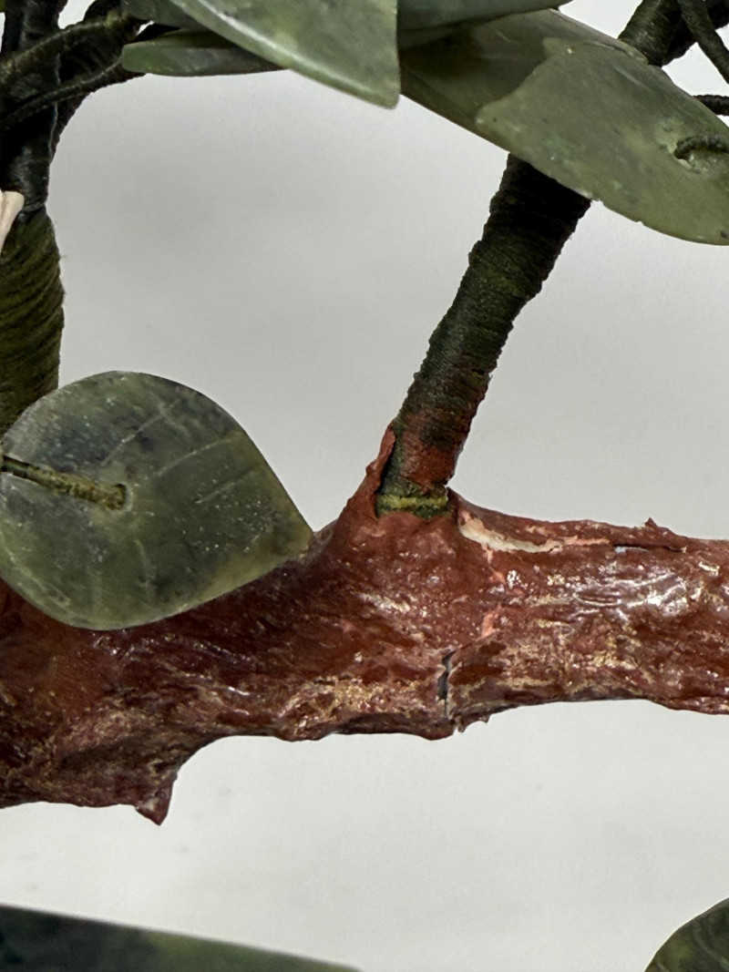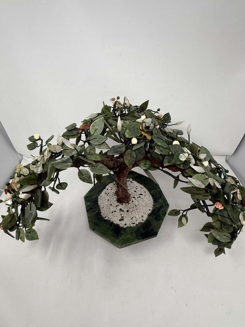 3 Branch Jade and Coral Bonsai Tree in Jade Base. 13x13x20”