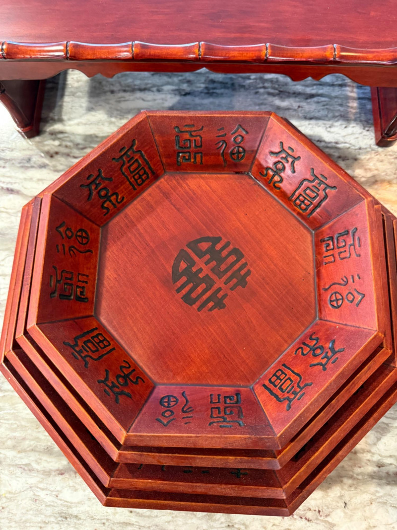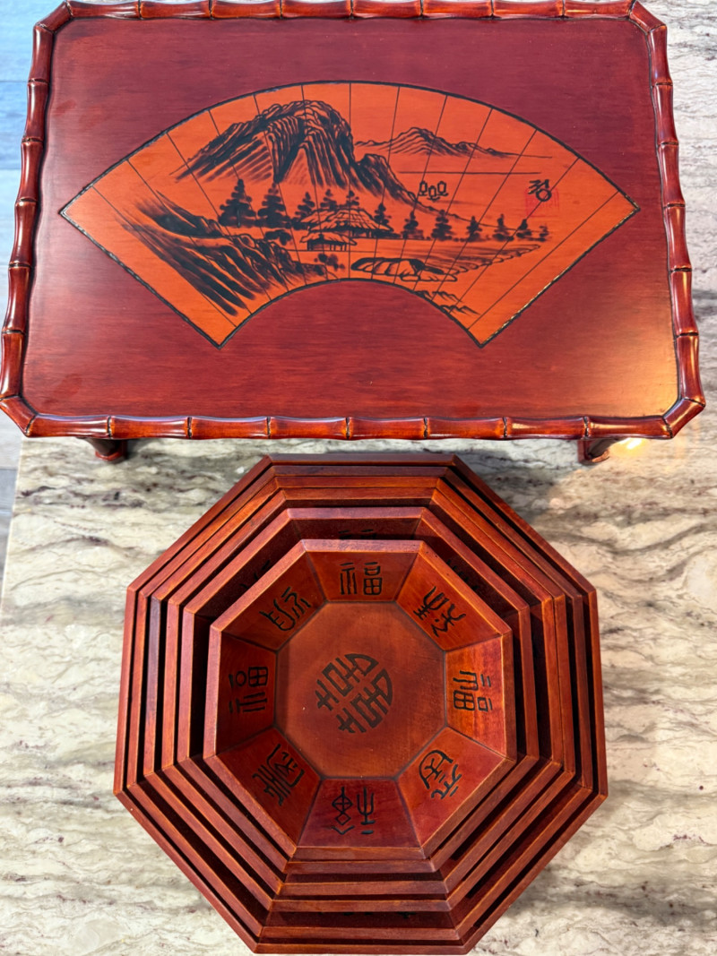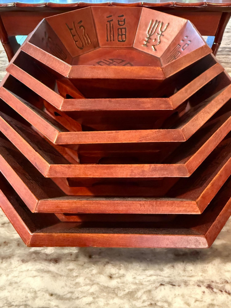 Lot # 297 - Rosewood 6 Bowl Nesting Bowl Set and Raised Tray