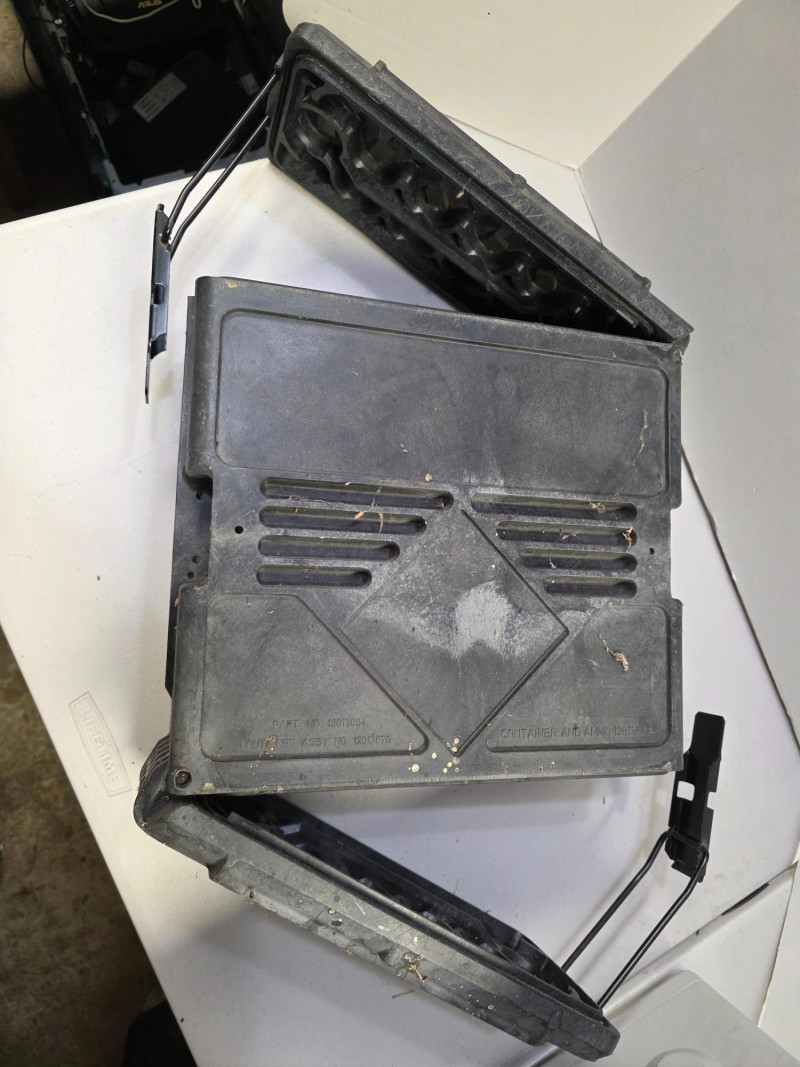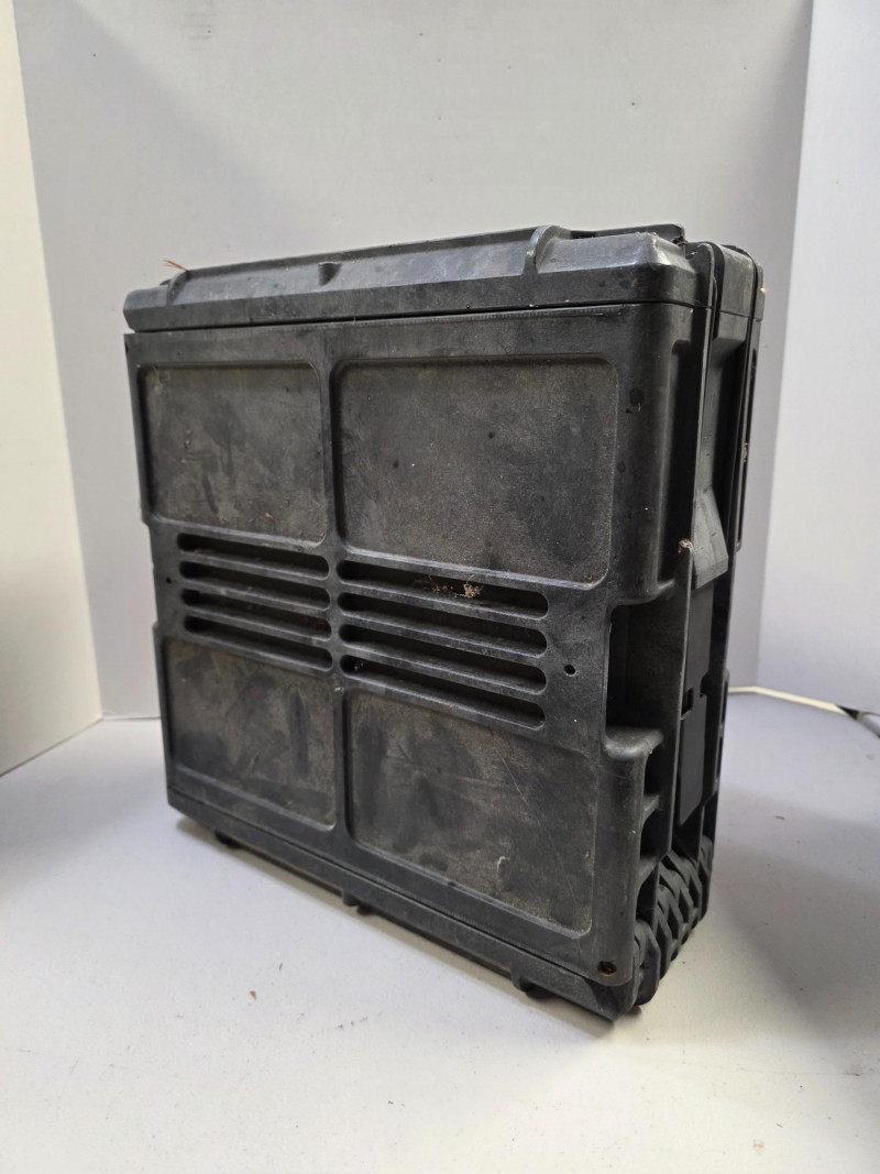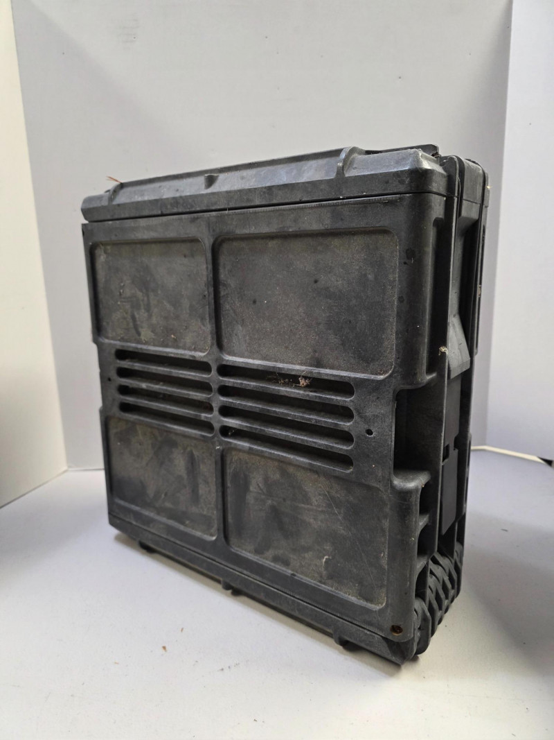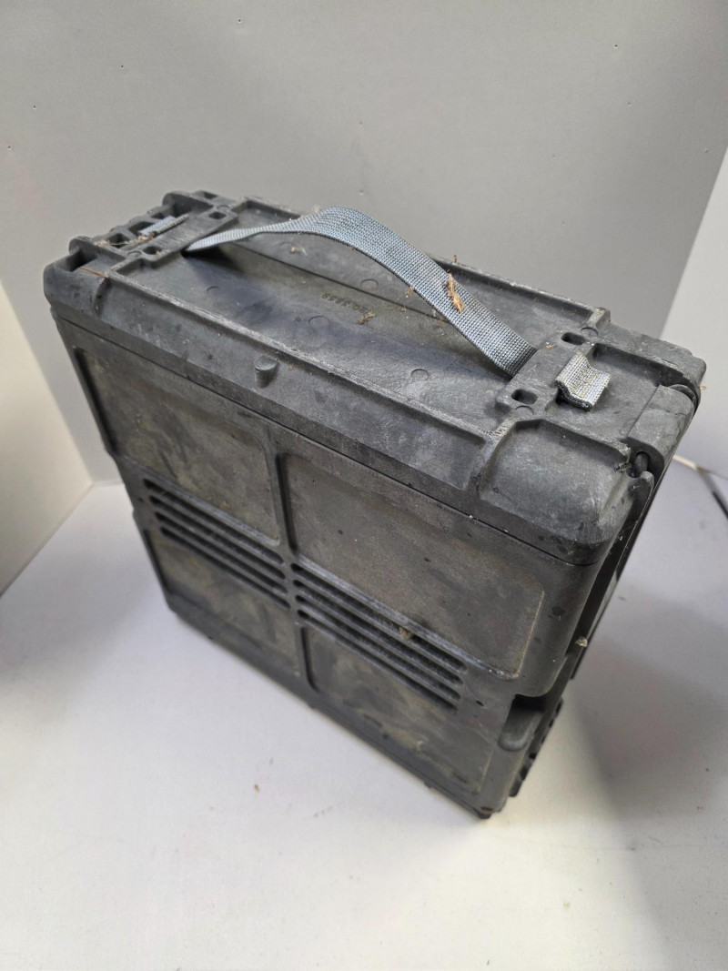 US Military M793 Composite Case For 25mm Linked Cannon Ammunition The cases are typically made of a durable, hard plastic and are designed to be crushproof, watertight, and dustproof. Opens from both top & bottom. Has carry handle intact on top & bottom. A little dirty but a tough case! 14.5"T x 5.75"W x 14"D