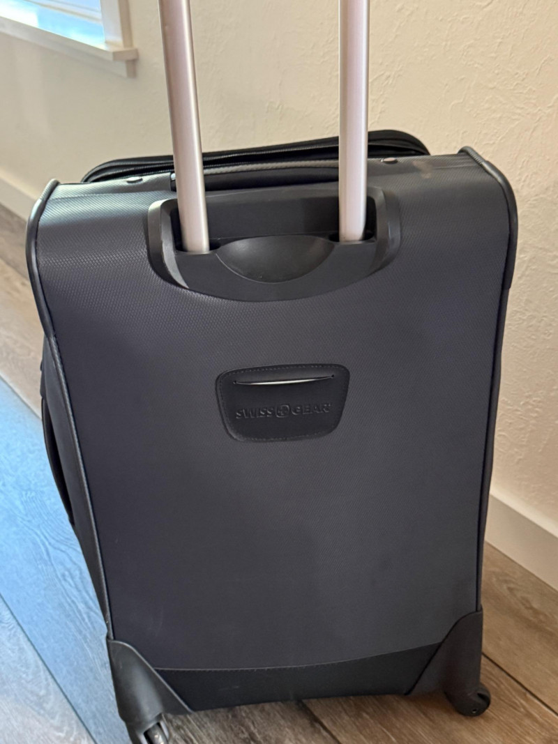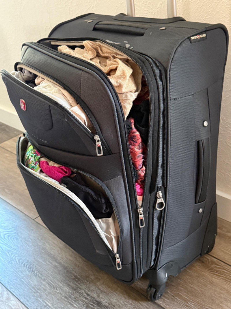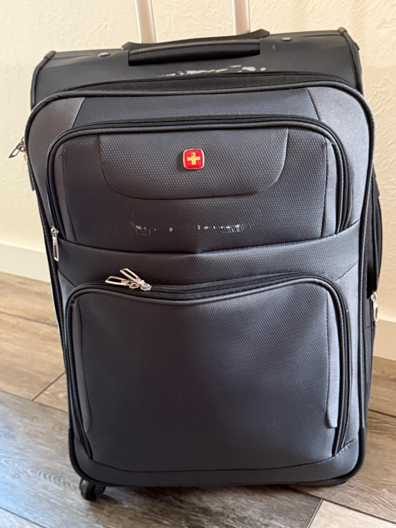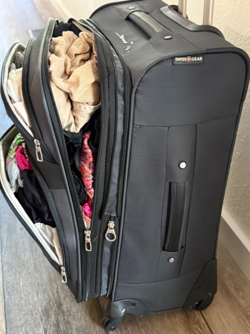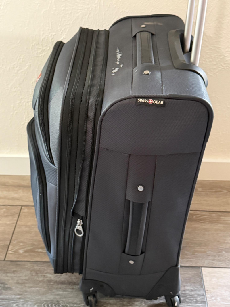 16x14x25.5” Swiss Gear suitcase stuffed full of women’s S-M wardrobe. Some NWT.
