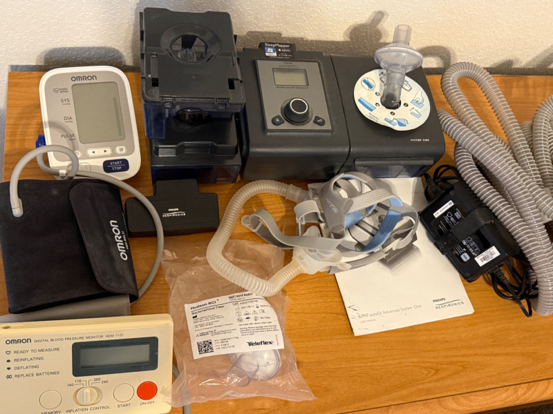 Lot # 8 - Philips Respironics BiPAP System One & Tubing & 2 Omron BP Monitors