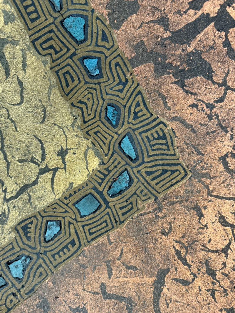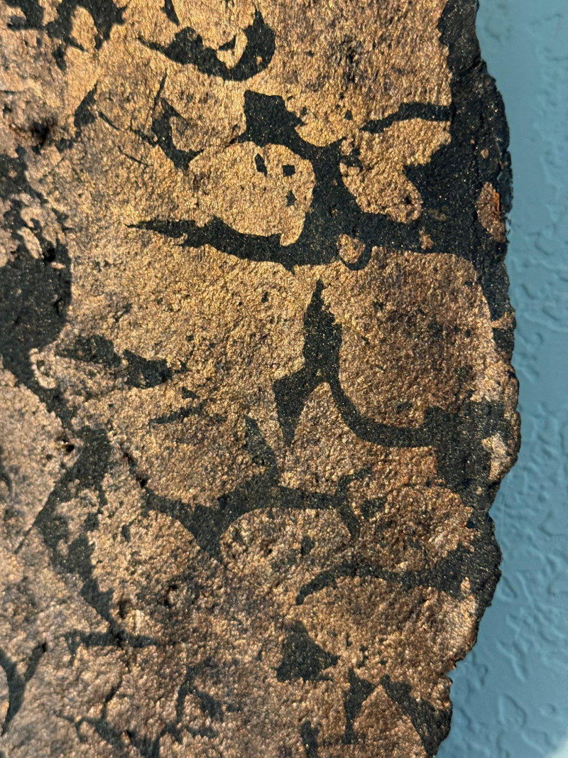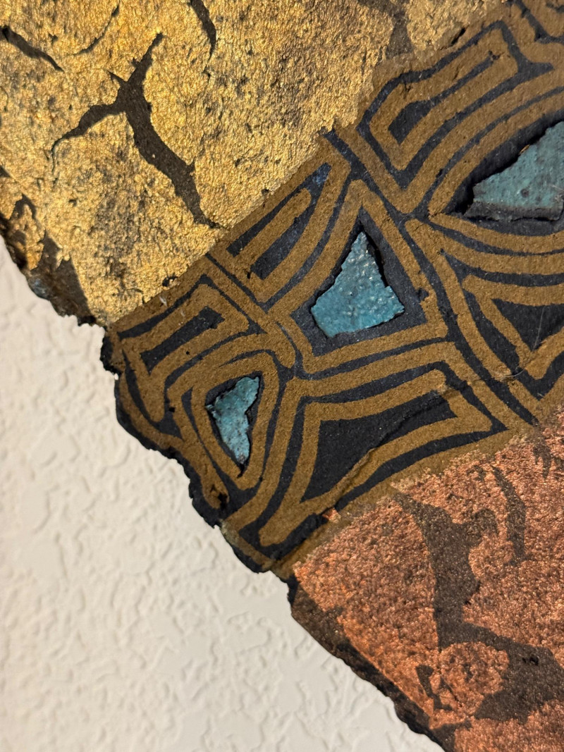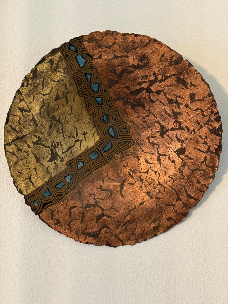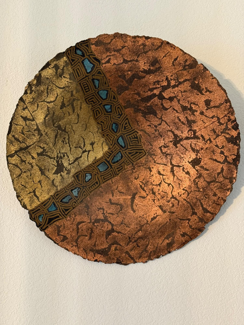 Modern Paper Fiber Bowl Wall Art Painted gold and copper with turquoise colored inlay.