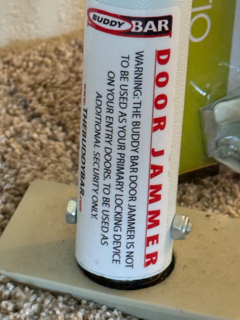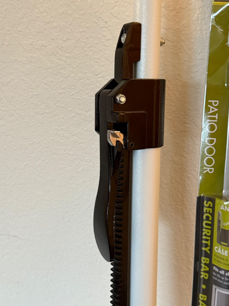 Door Jammer & Patio Door Security Bar Door Jammer by Buddy Bar. Cast iron door knob support and metal tube construction Patio Door Security Bar fits 26-47” patio doors.