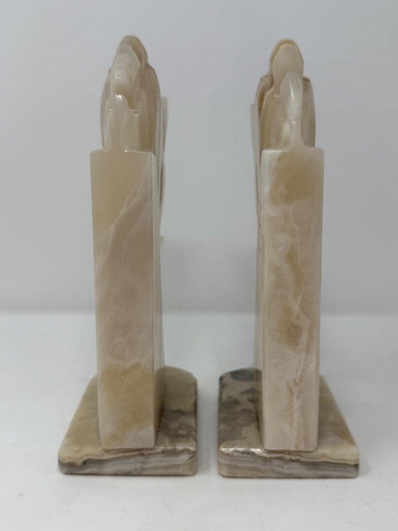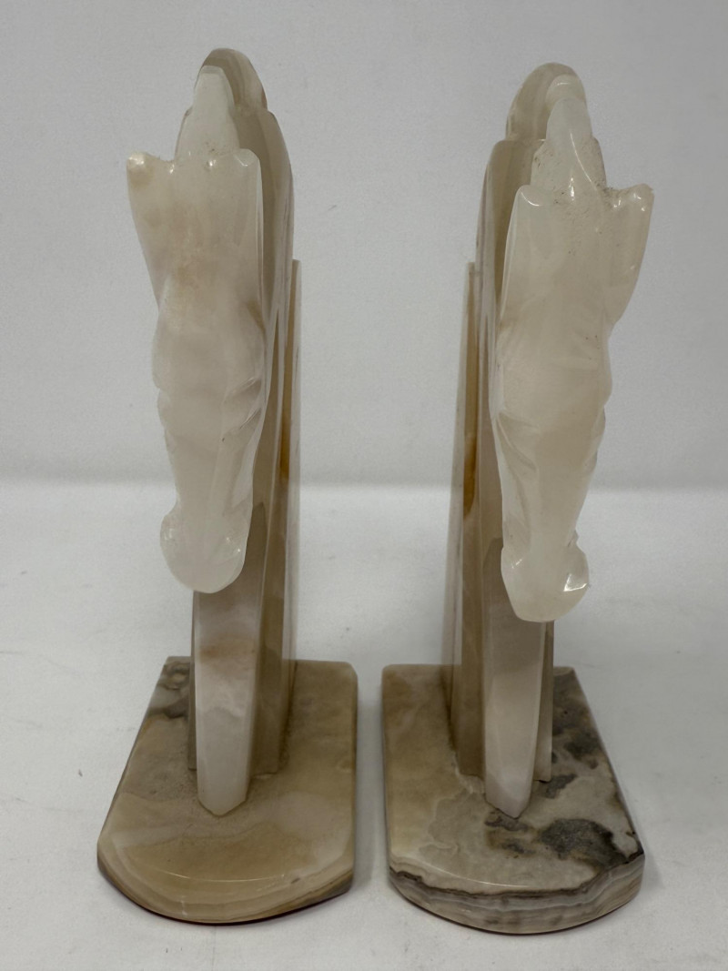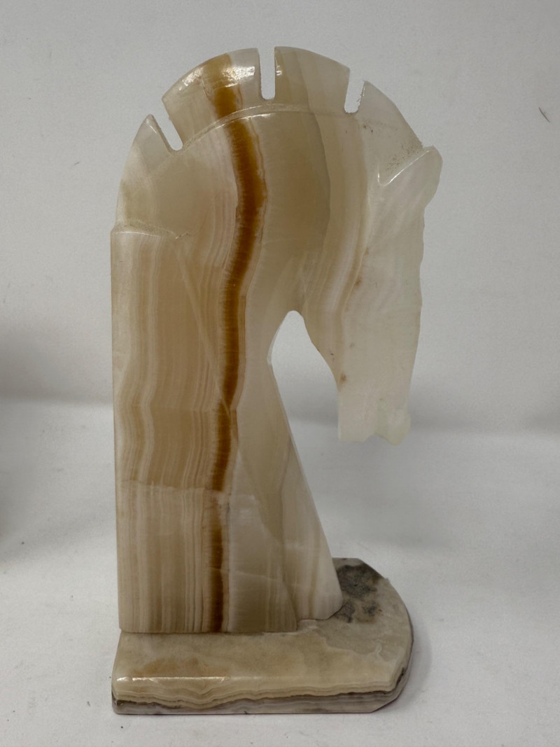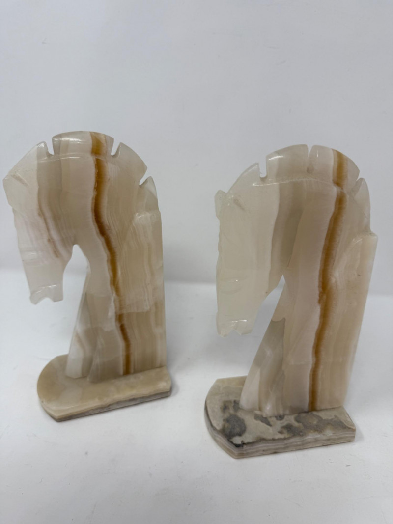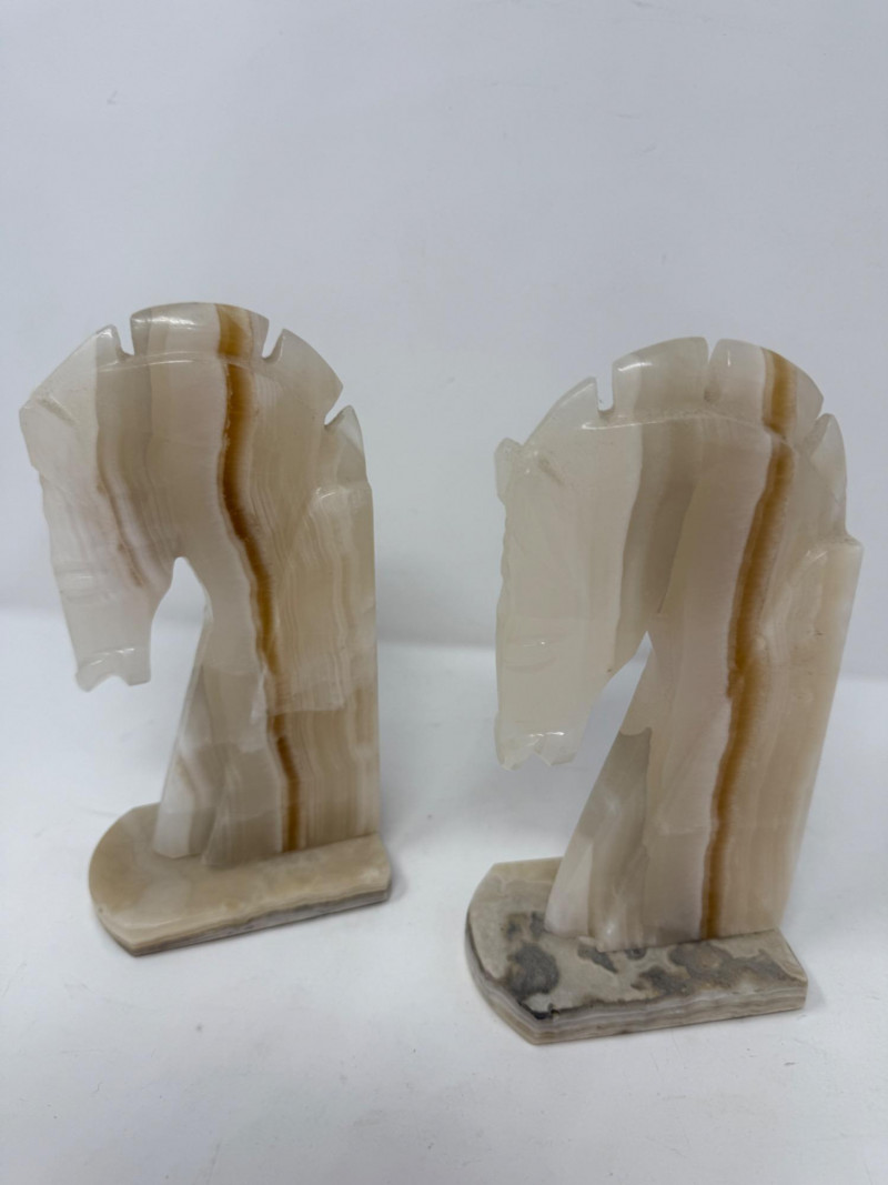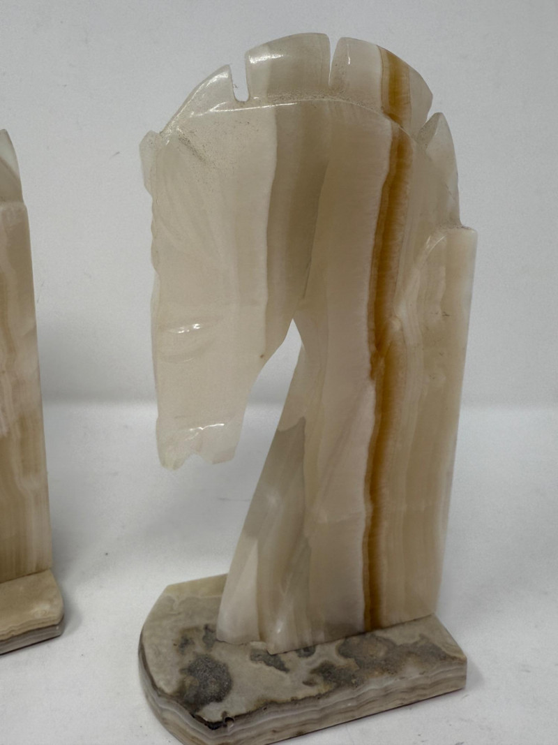 Lot # 27 - (2) Onyx Carved Horse Head Bookends or Statues