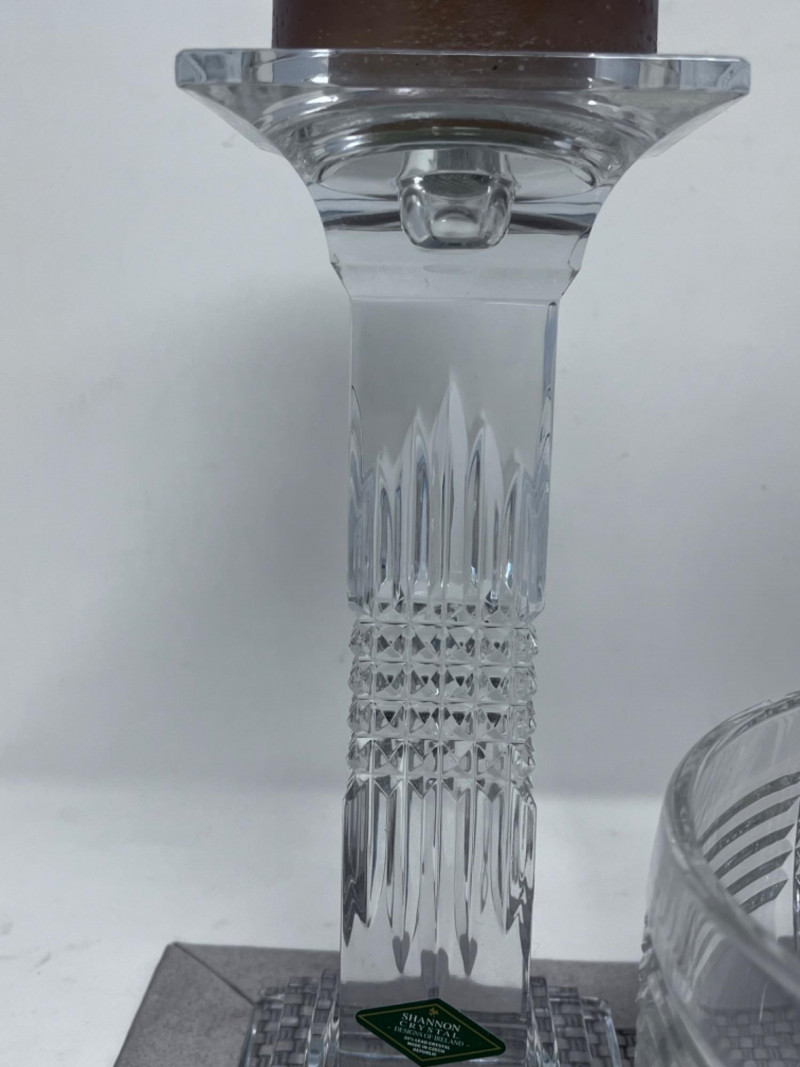 Lot # 47 - (2) Shannon Crystal Candle Pillars & Imperlux Crystal Bowl
