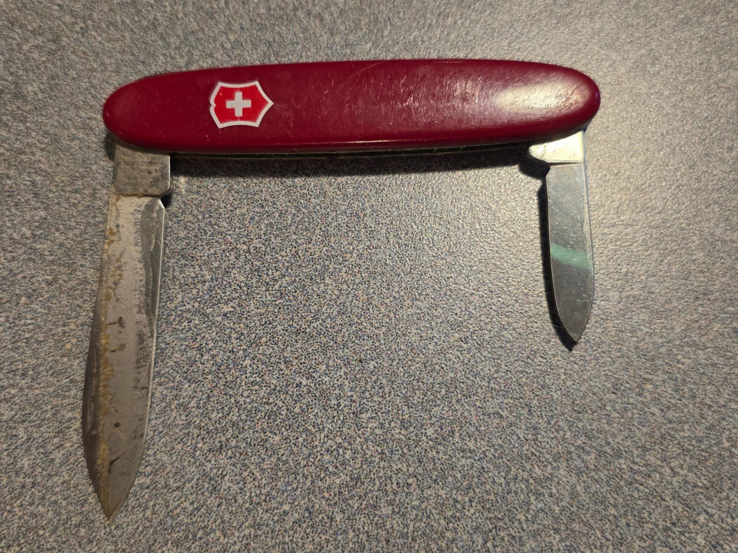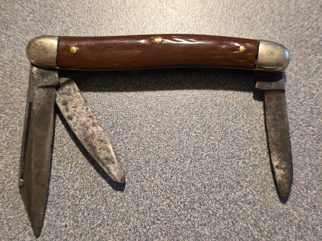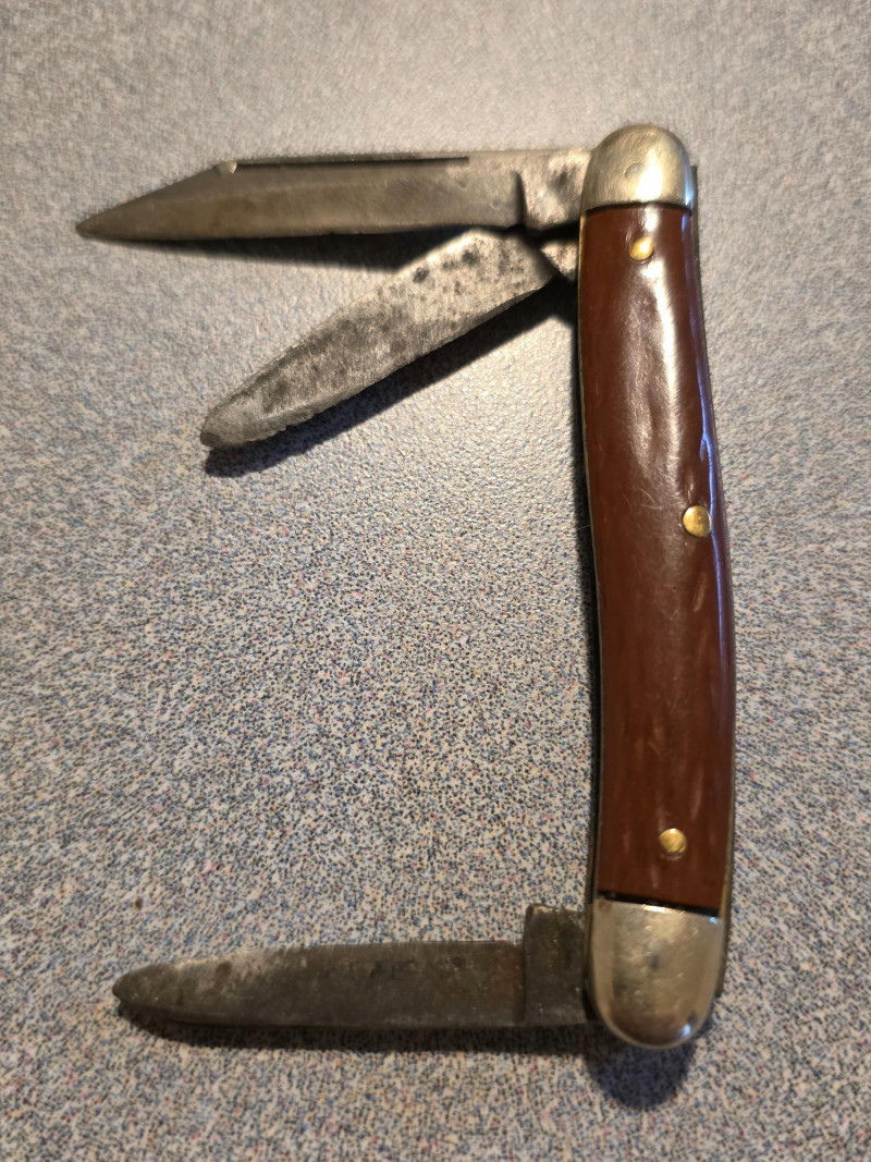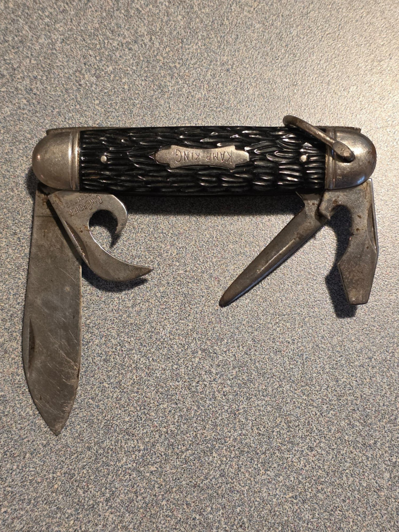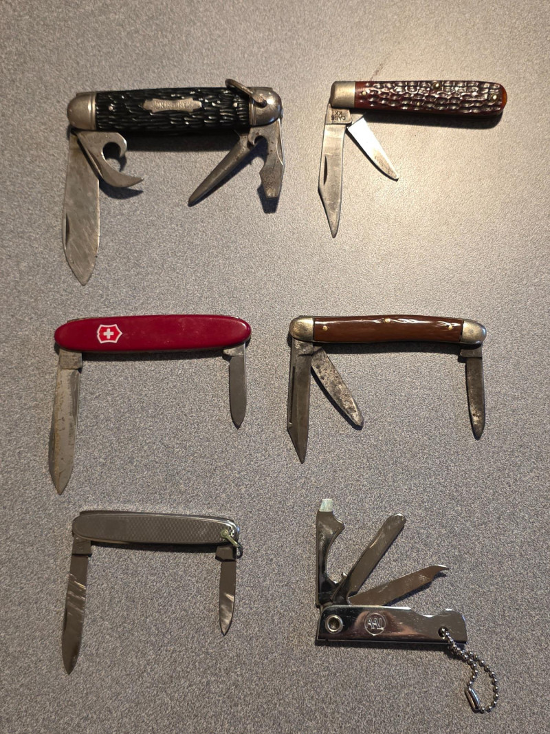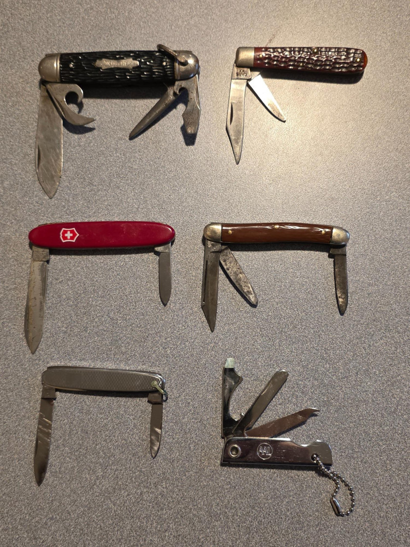 Pocket Knife Collection (6) (1) Vintage Kamp-King pocket knife, manufactured by the Imperial Knife Company (1) Vintage Case XX red bone jigged handle folding pocket knife (1) Vintage red Victorinox Swiss Army knife with two blades (1) Old-Timer style pocket knife (1) Friodur ice-hardened steel folding pocket knife (1) Bassett keychain multi-tool 6 knives in all
