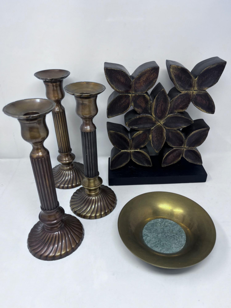 Lot # 57 - (3) Bombay Company Brass Candle Sticks and More
