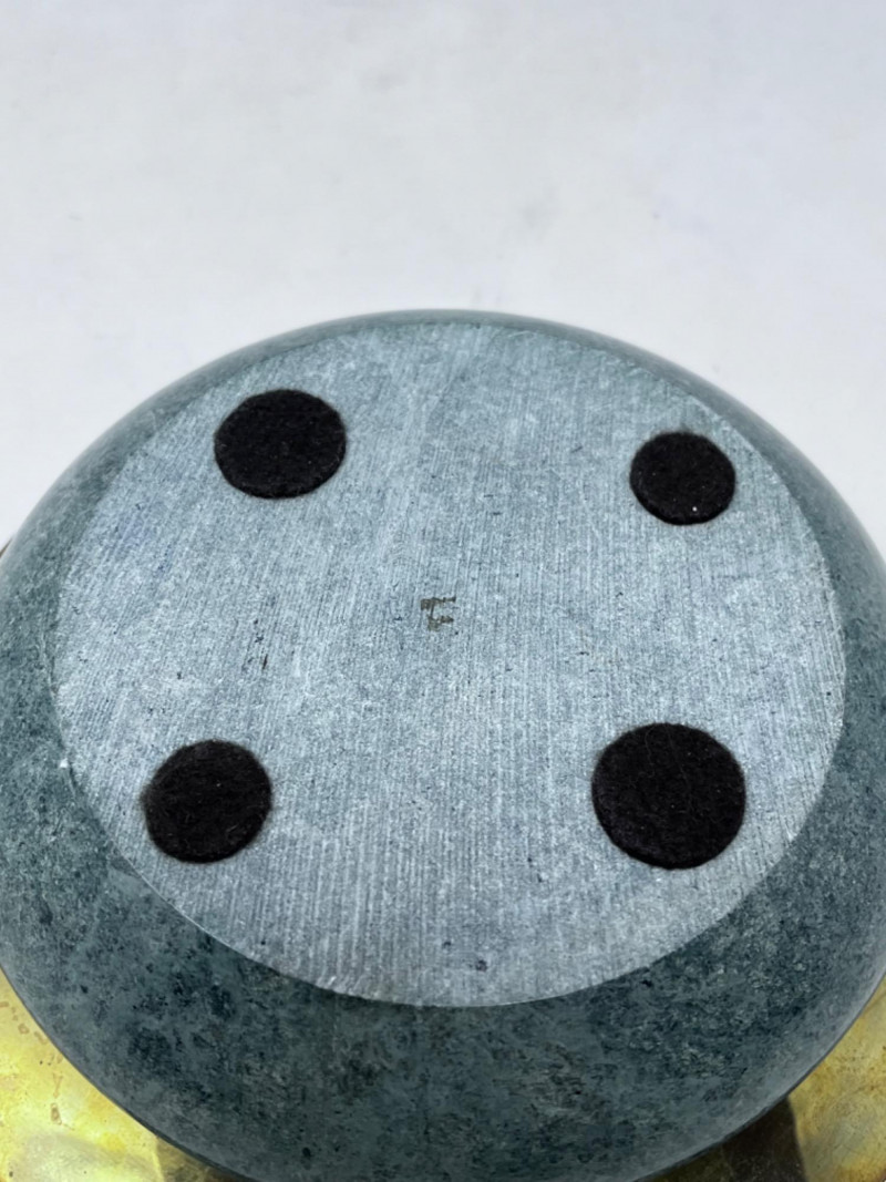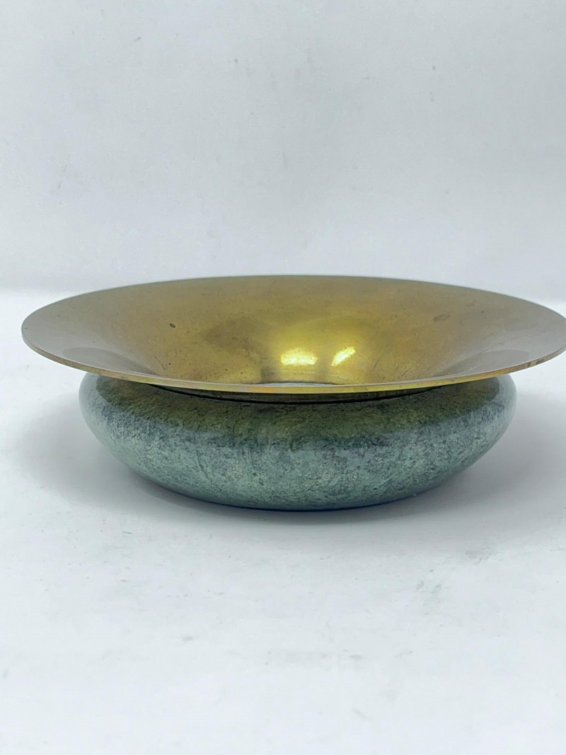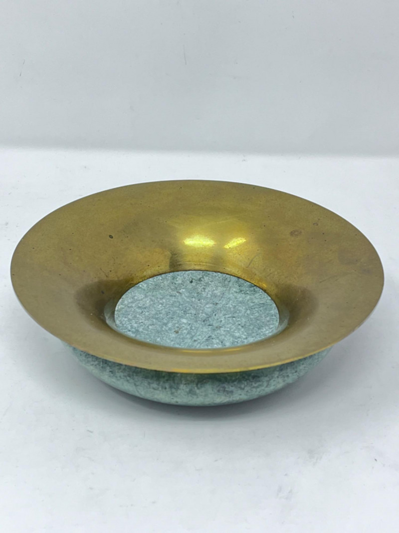 Light green marble and brass bowl. 7”x2”