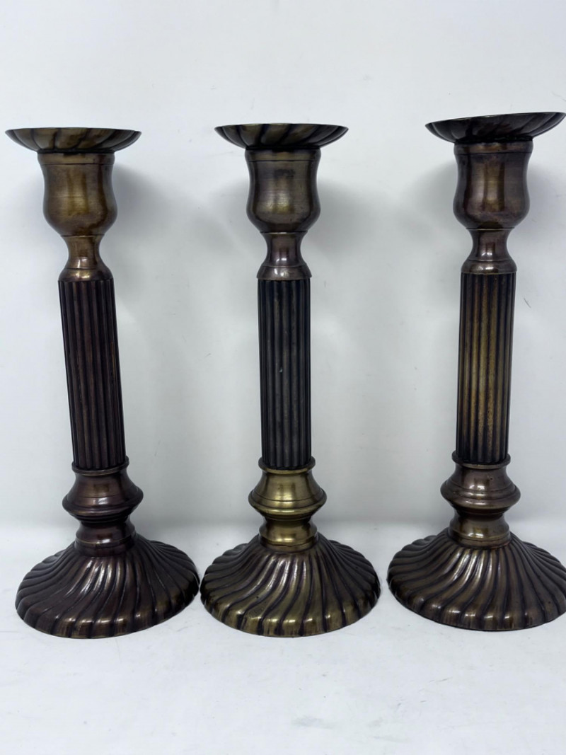(3) Bombay Company Brass Candle Sticks and More (3) Lacquered solid brass taper candle sticks with felt bottoms from The Bombay Company. 4.5”x11”