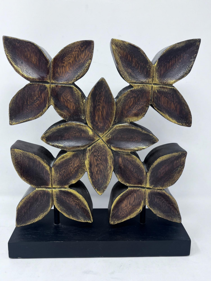 Wood floral decor with gold paint highlights. 10”x3.5”x11.5”