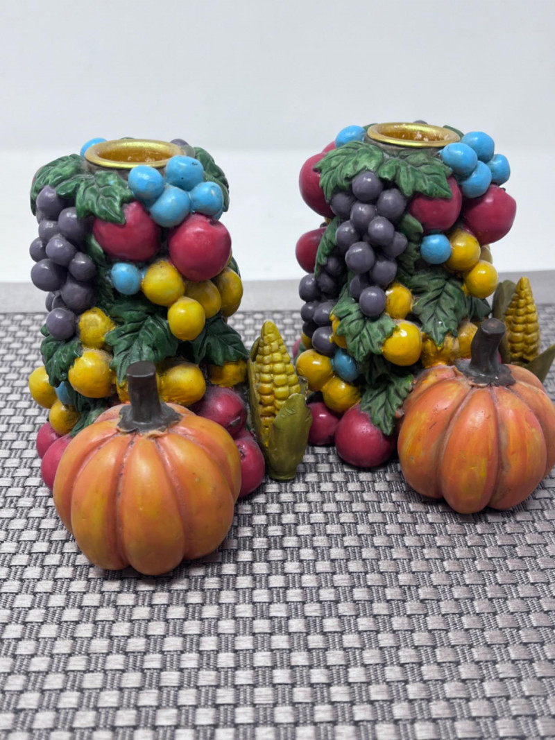 (2) Wooden fruit candle sticks 4”x3.5”x4”