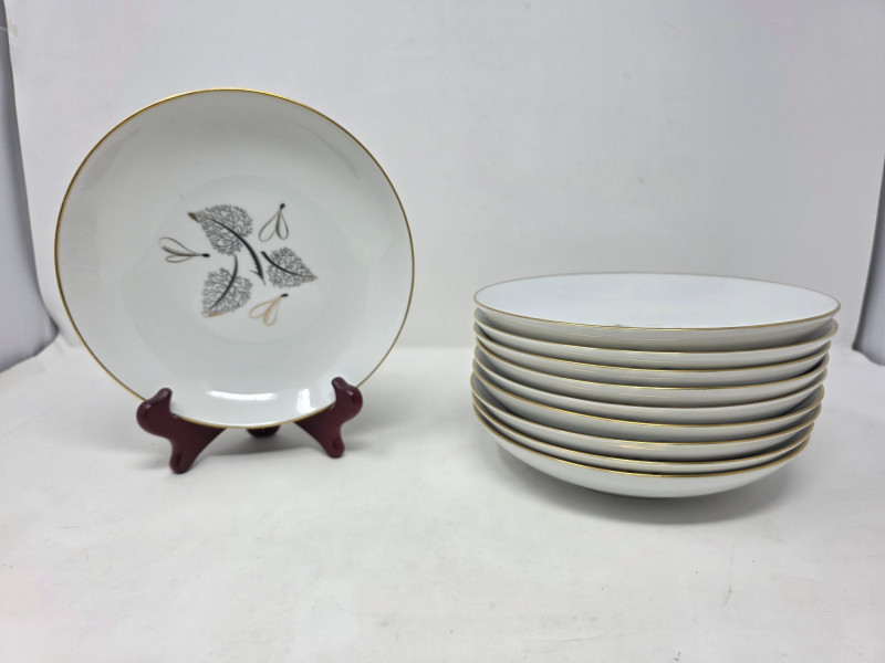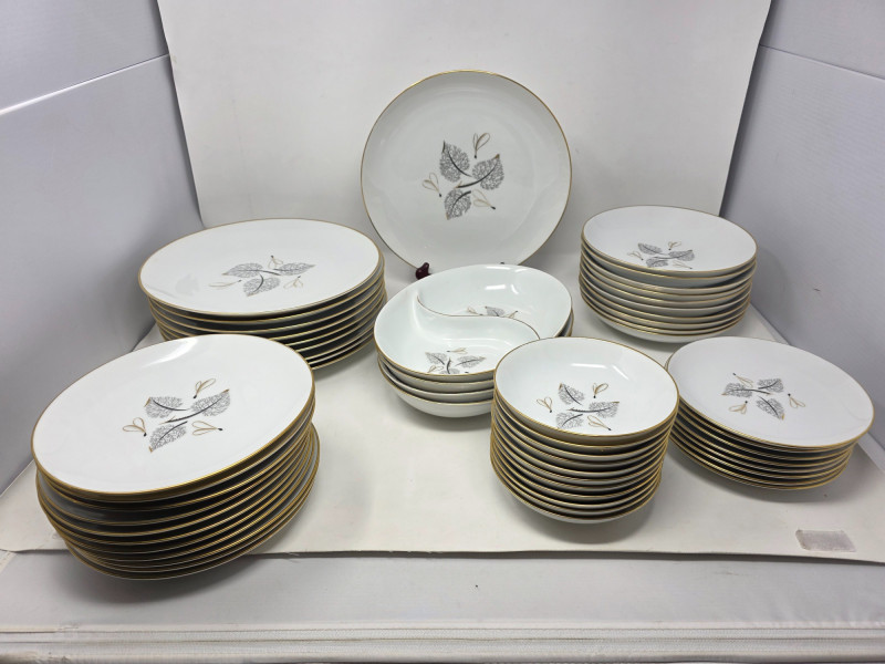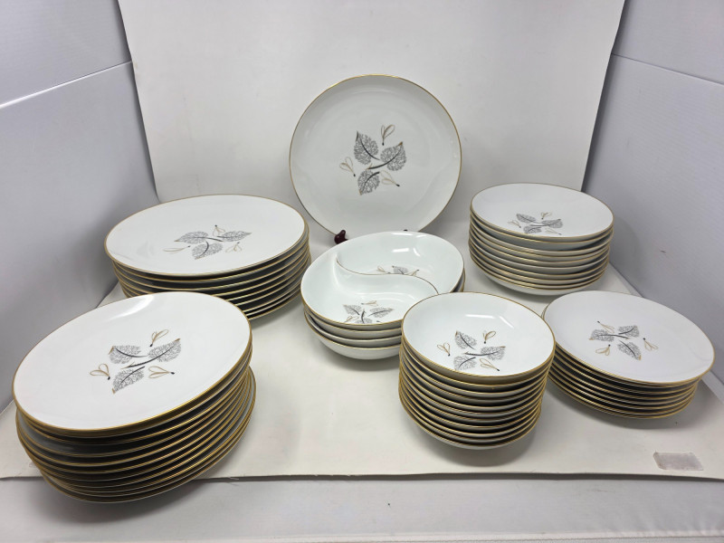 1956 Harmony House 'Flair' MCM China Set (10) 10" Dinner Plates (11) 8" Salad Plate (8) 6.5" Bread Plate (10) 7.5" Large Bowls (11) 5.5" Small Bowls (3) 10" Serving Bowls (1) 10" Divided Serving Bowl 54 pieces in all!