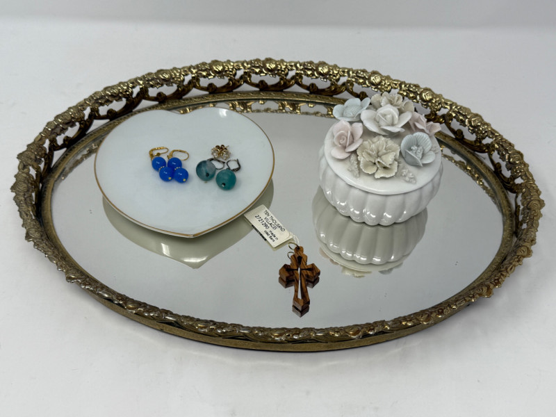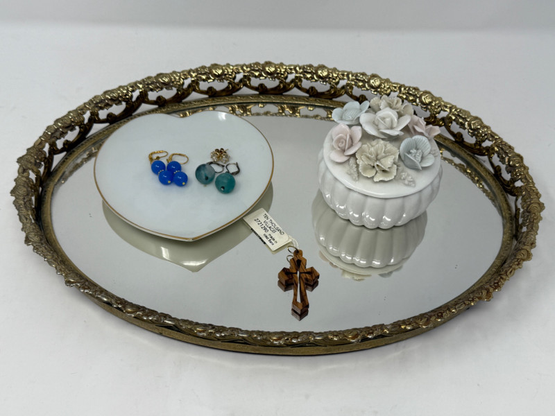 Lot # 77 - Ardalt Lenwile Trinket Box - Mirrored Tray & Earrings