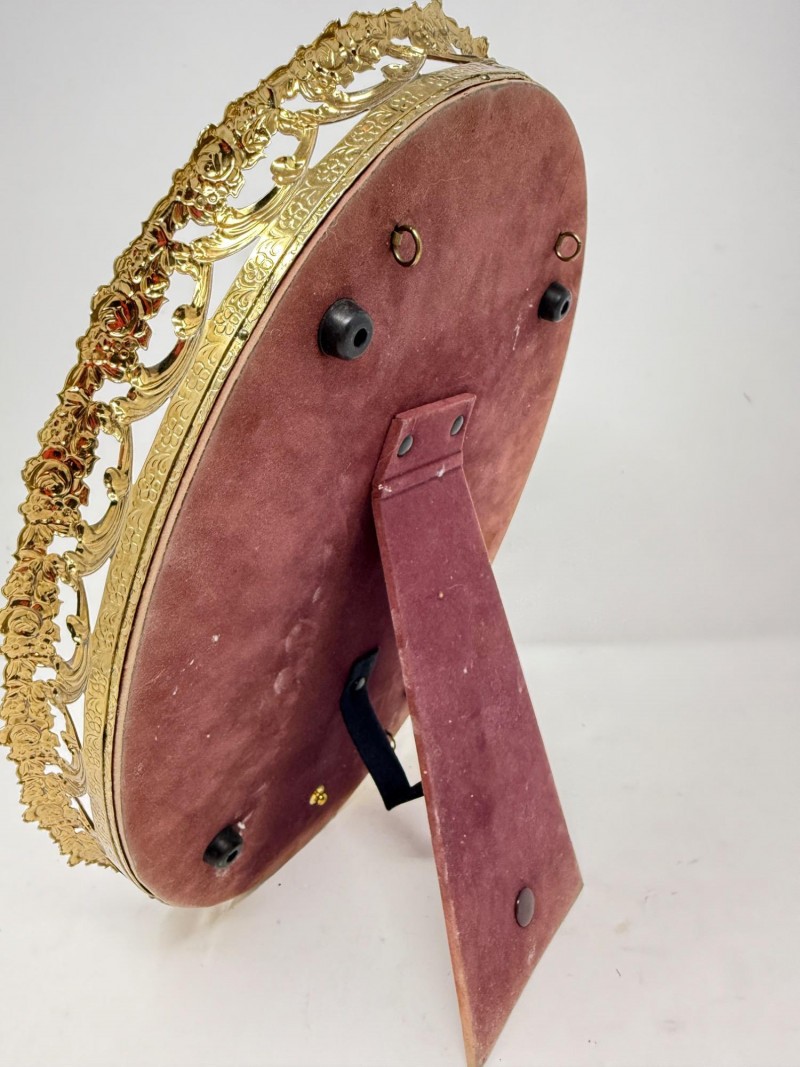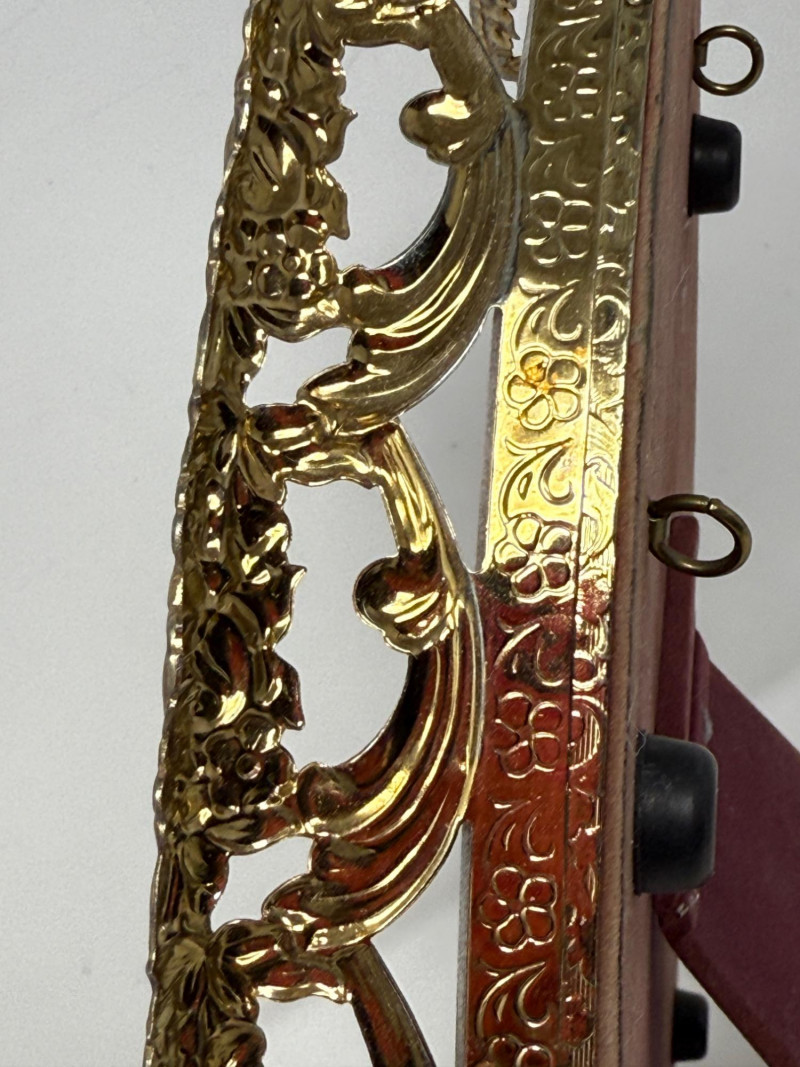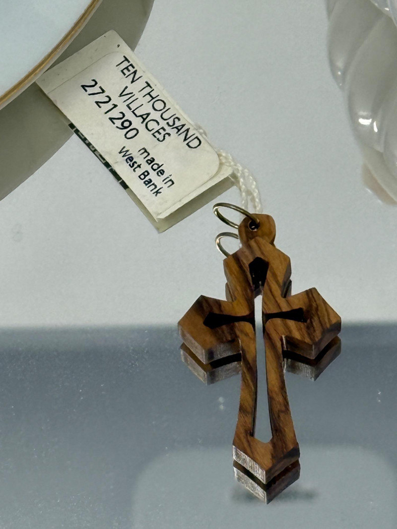 Ardalt Lenwile Trinket Box - Mirrored Tray & Earrings Mirror with gold metal rim has multiple ways to display. Wood Cross made in West Bank