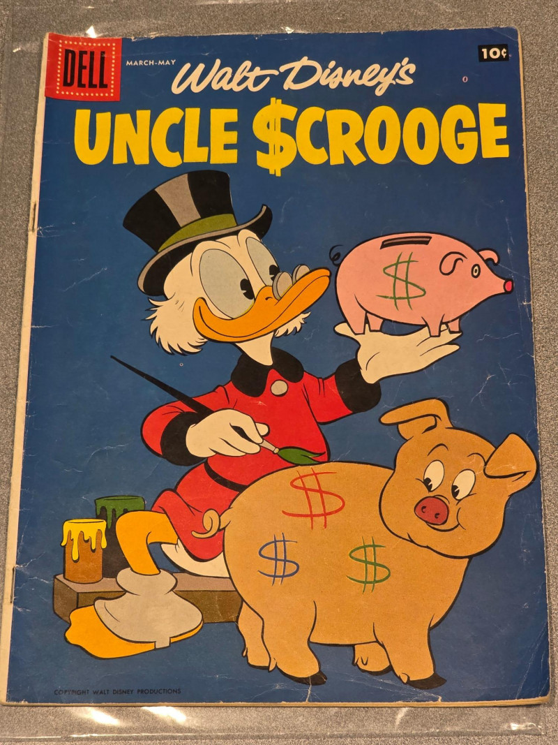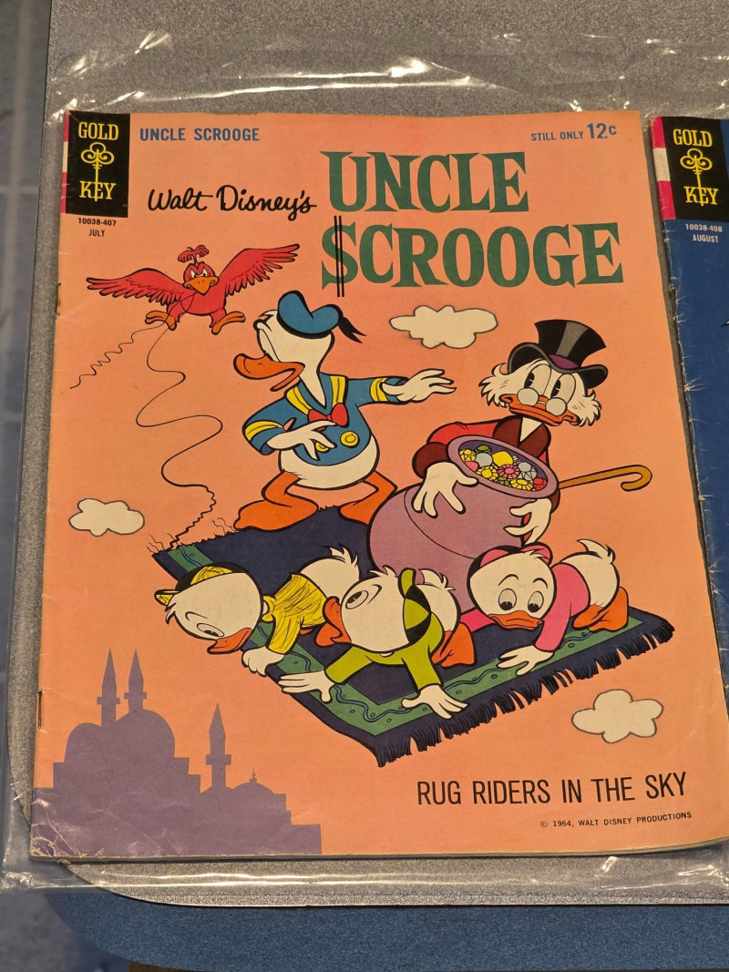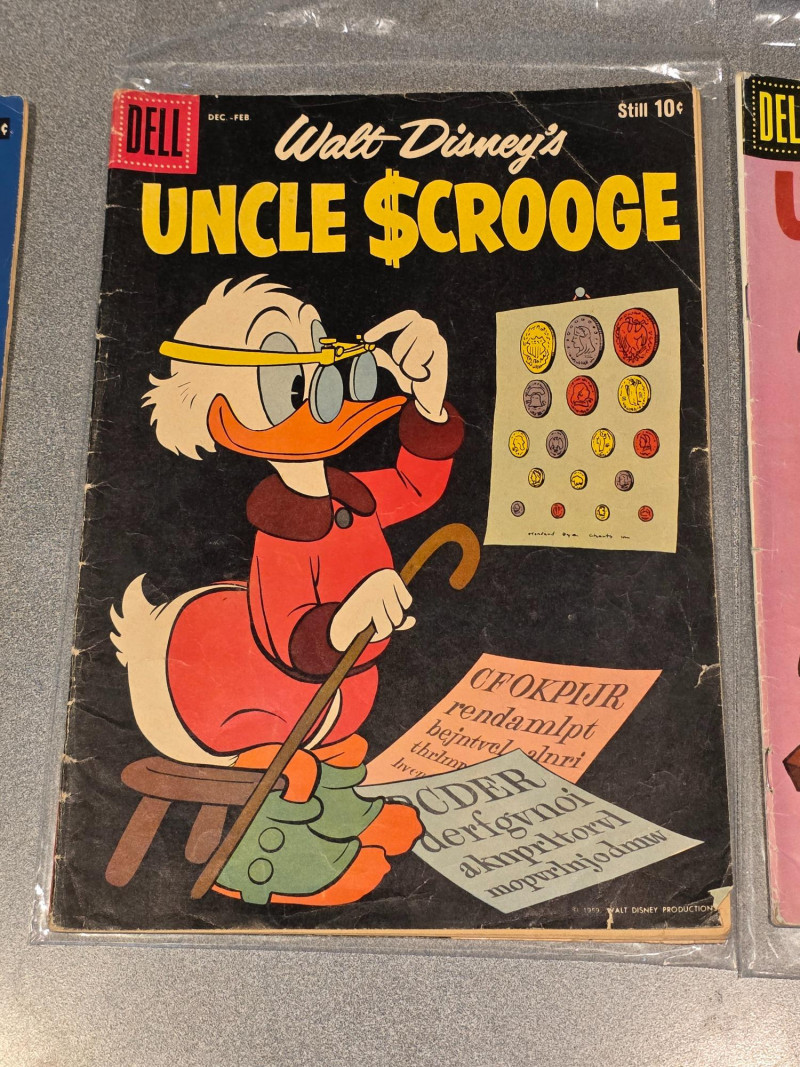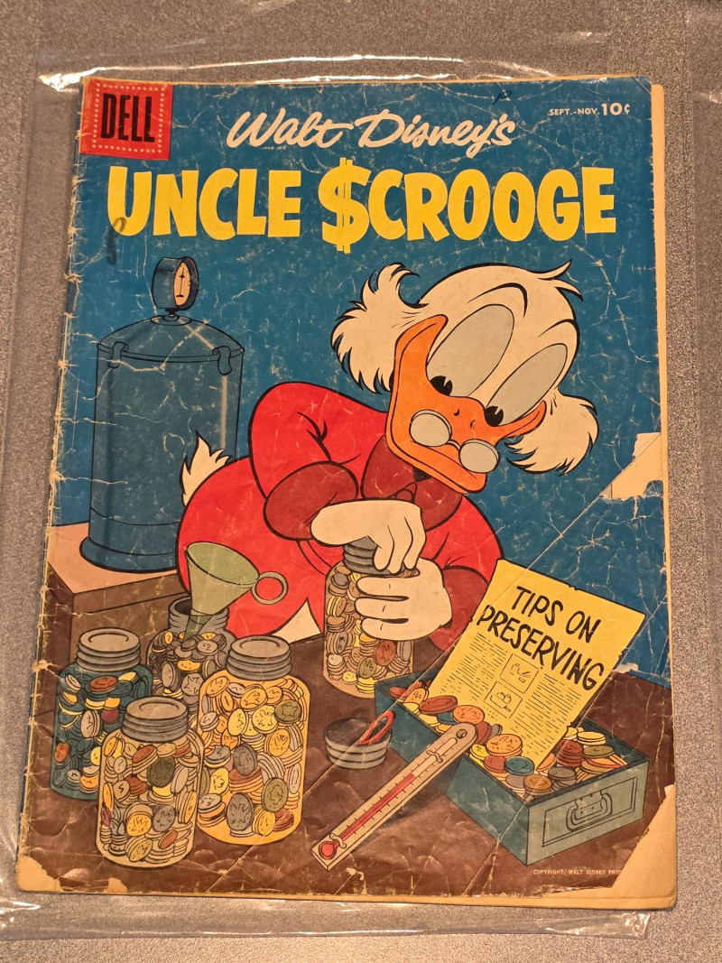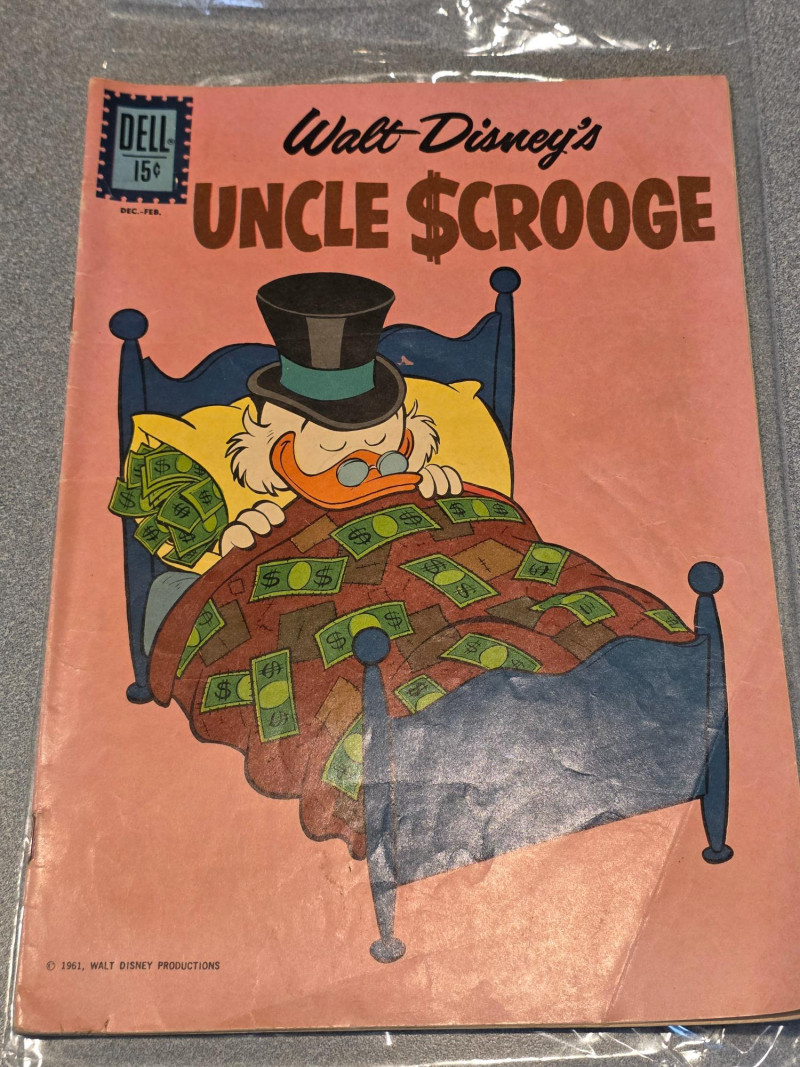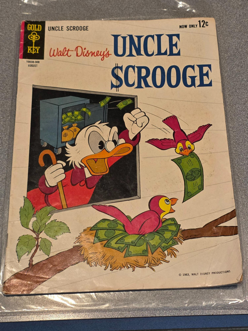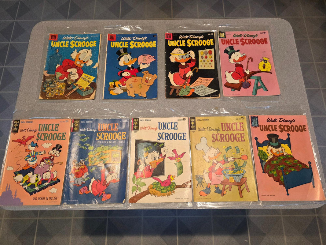 (9) Walt Disney's Uncle $crooge Vintage Comics From 1956-1964, the Silver Age of Comics! Walt Disney's Uncle Scrooge #15, published by Dell Comics in September-November 1956 Walt Disney's Uncle Scrooge #21, published by Dell Comics in March-May 1958 Walt Disney's Uncle Scrooge #28, published by Dell Comics in December-January 1959/1960 Walt Disney's Uncle Scrooge #29, published by Dell Comics in March-May 1960 Walt Disney's Uncle Scrooge #50, published by Gold Key Comics in July 1964 Walt Disney's Uncle Scrooge #51, published by Gold Key Comics in August 1964 Walt Disney's Uncle Scrooge #44, published by Gold Key Comics in August 1963 Walt Disney's Uncle Scrooge #43, published by Gold Key Comics in July 1963 Walt Disney's Uncle Scrooge #36, published by Dell Comics in December 1961 All books in decent condition (see pics) and in plastic bag sleeves 9 comics in all!