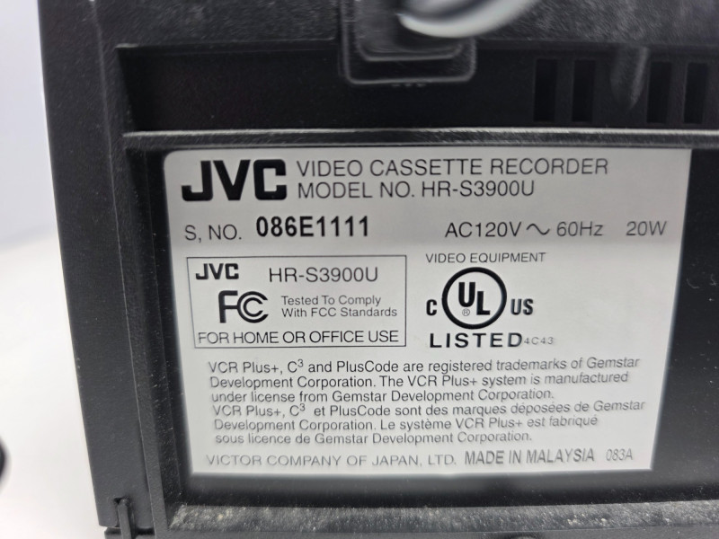 JVC Super VHS Hi-Fi VCR Model #HR3900U JVC HR-S3900U is a Super VHS (S-VHS) Hi-Fi VCR Tested - Powered On! 3.5"T x 15.5"W x 10.25"D