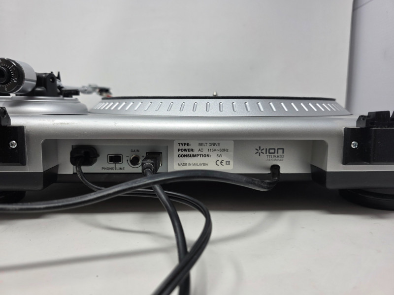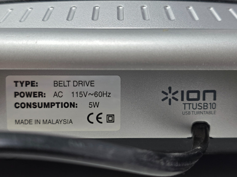 ION TTUSB10 USB Turntable Model #TTUSB10 The ION TTUSB10 is an entry-level turntable designed for converting vinyl records to digital audio files via a USB connection to a computer Includes dual-RCA cable & USB cable Cover hinges disconnected Tested - Works! 6"T x 17.5"W x 14"D