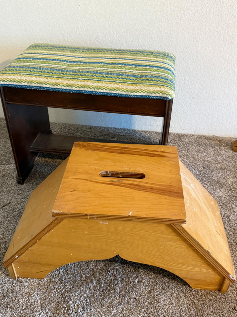 Lot # 87 - Antique Vanity Bench Plus Handy Step Stool