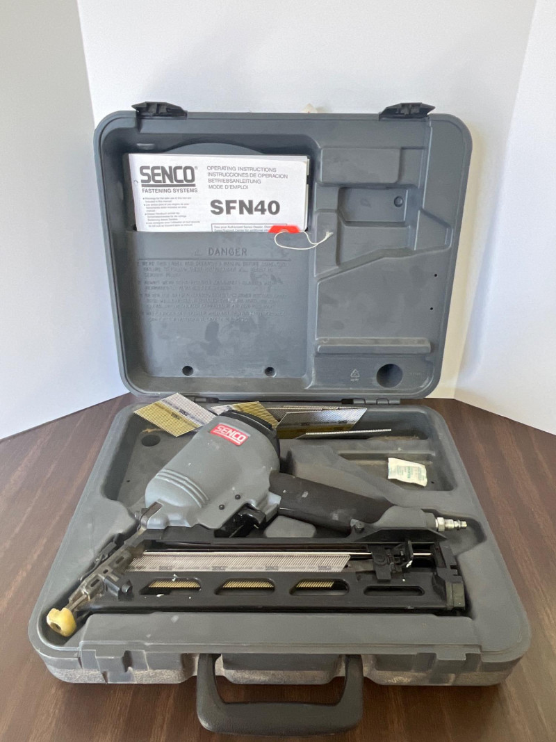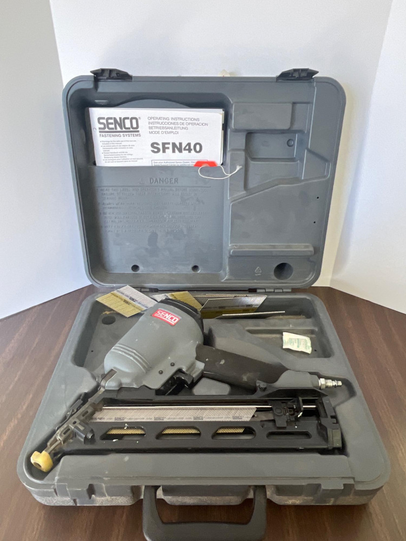 Senco Pneumatic Nail Gun in Case Model #SFN40 Case includes owners manual and extra nails 15 gauge nail, 80-110 psig, 1 1/4-2 1/2 nail length Untested