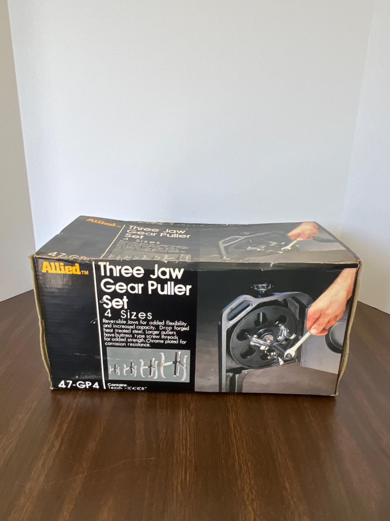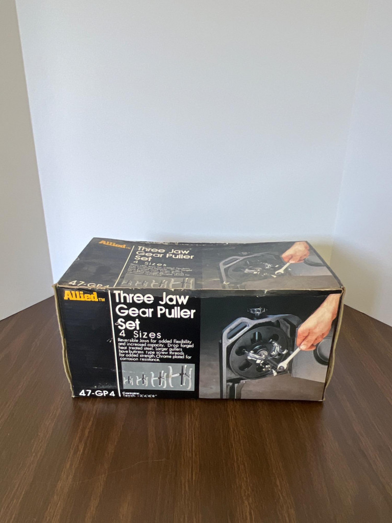 Allied Three Jaw Gear Puller Set (1) 8” 3-jaw gear puller (1) 6” 3-jaw gear puller (1) 4” 3-jaw gear puller (1) 3” 3-jaw gear puller Model #47-GP4