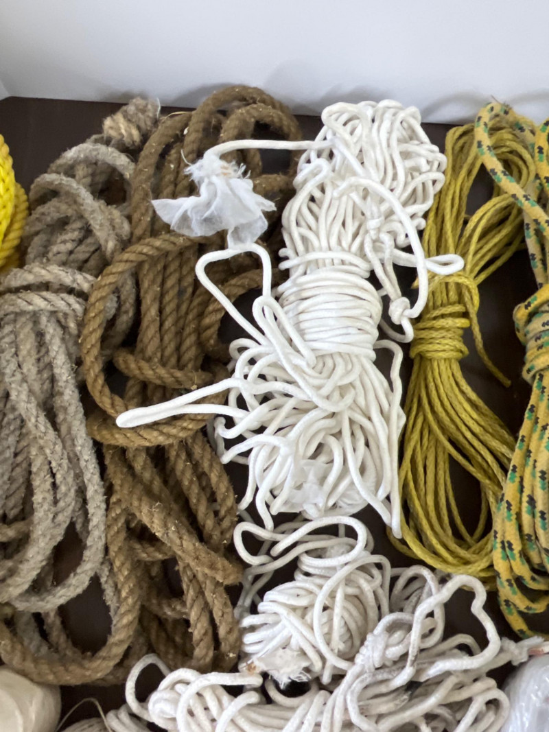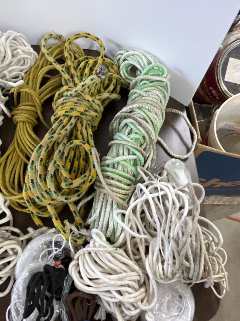 Box of Assorted Rope and String Good-useable condition Mostly braid on braid, Some kernmantle Box dimensions: 9.5”T x 12”W x 14”D