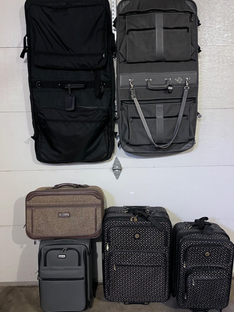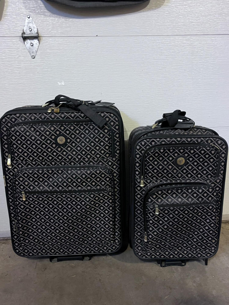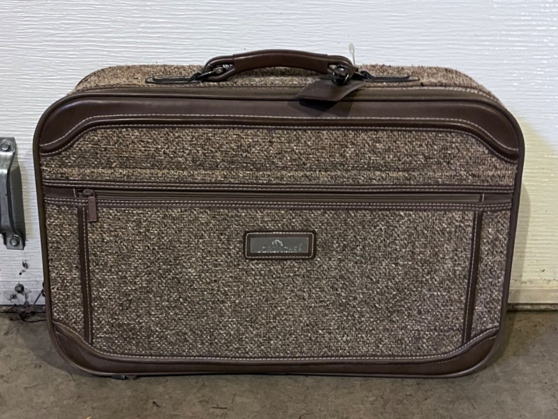 (6) Pieces of Luggage (2) American Trunk n Case. 28” Roller bag & 24” roller bag. Overland carry-on bag 20”. Vintage Jordache 22” tweed suitcase. (6) Pieces in all.