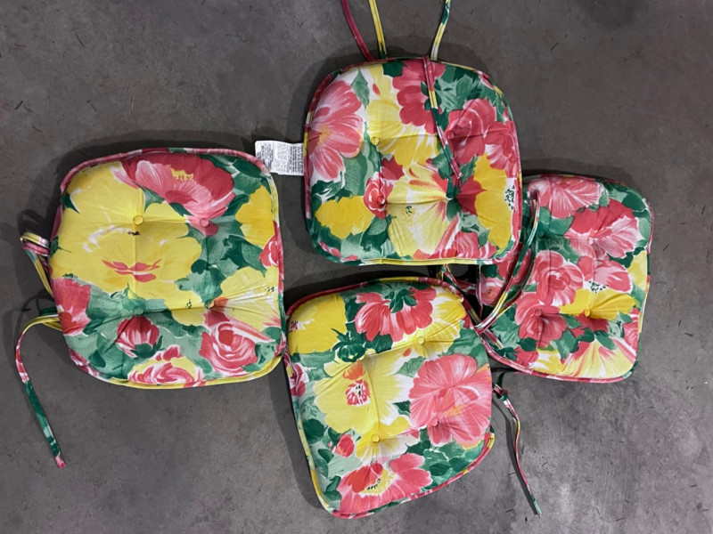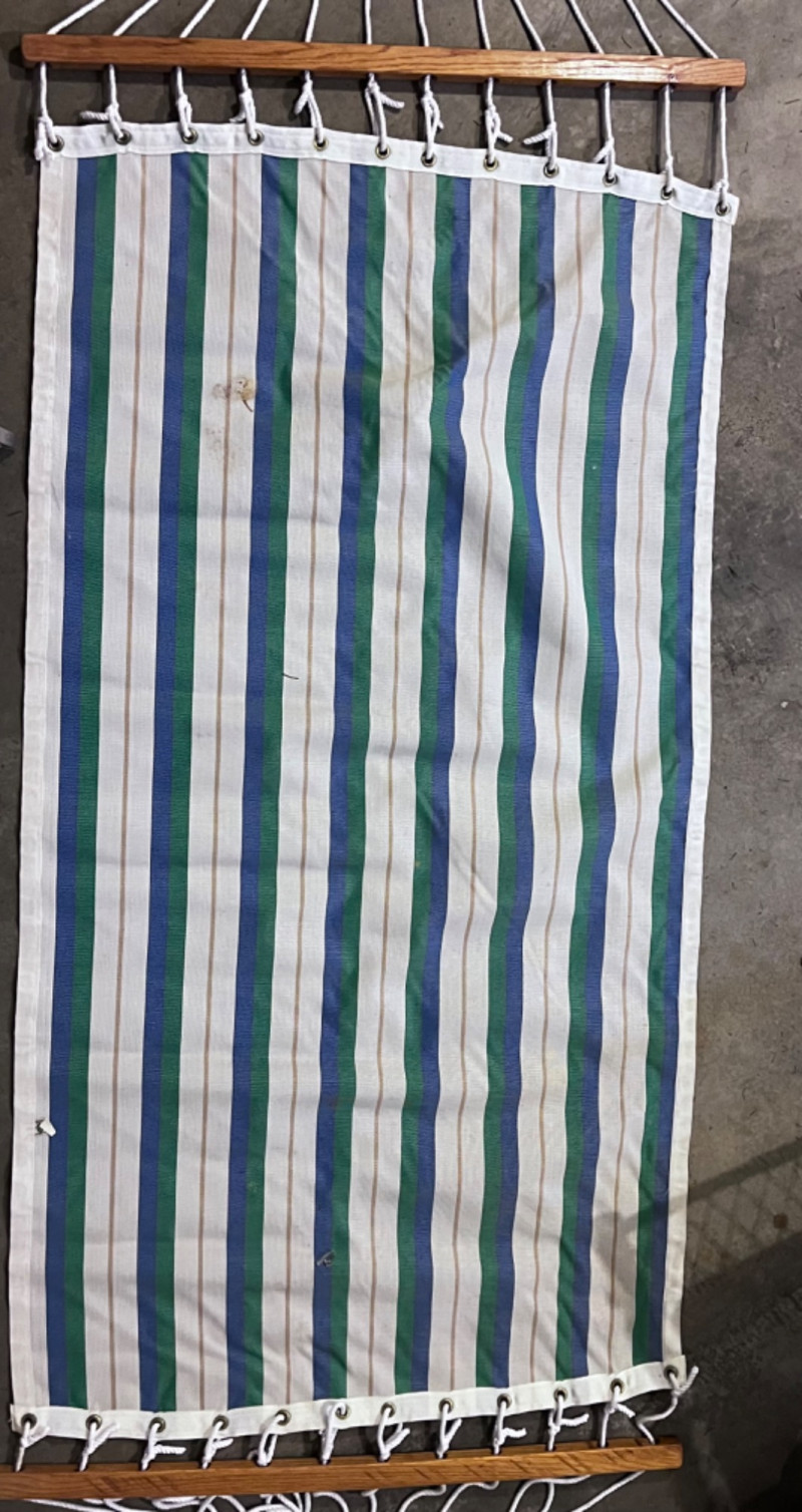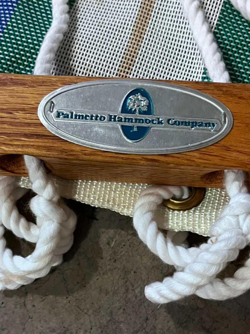 Summer Fun Collection Palmetto Hammock Company hammock. Canvas Hammock is 72”x39”. (3) butterfly metal decorations. Red: 14”x10.5” (4) Floral pattern outdoor seat cushions.