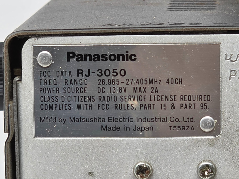Vintage Panasonic 40 Channel CB Radio With Mic Panasonic Model #RJ-3050 The Panasonic RJ-3050 is a vintage 40-channel mobile/in-vehicle CB Radio The radio includes an Automatic Noise Limiter (ANL) feature, which helps to reduce noise for clearer communication Untested! 2.5"T x 6.5"W x 10.5"D "This here's Rubber Duck, we got ourselves a convoy!"