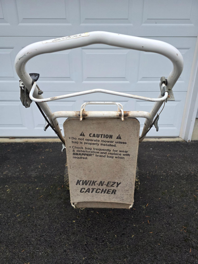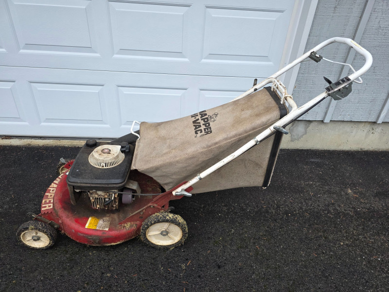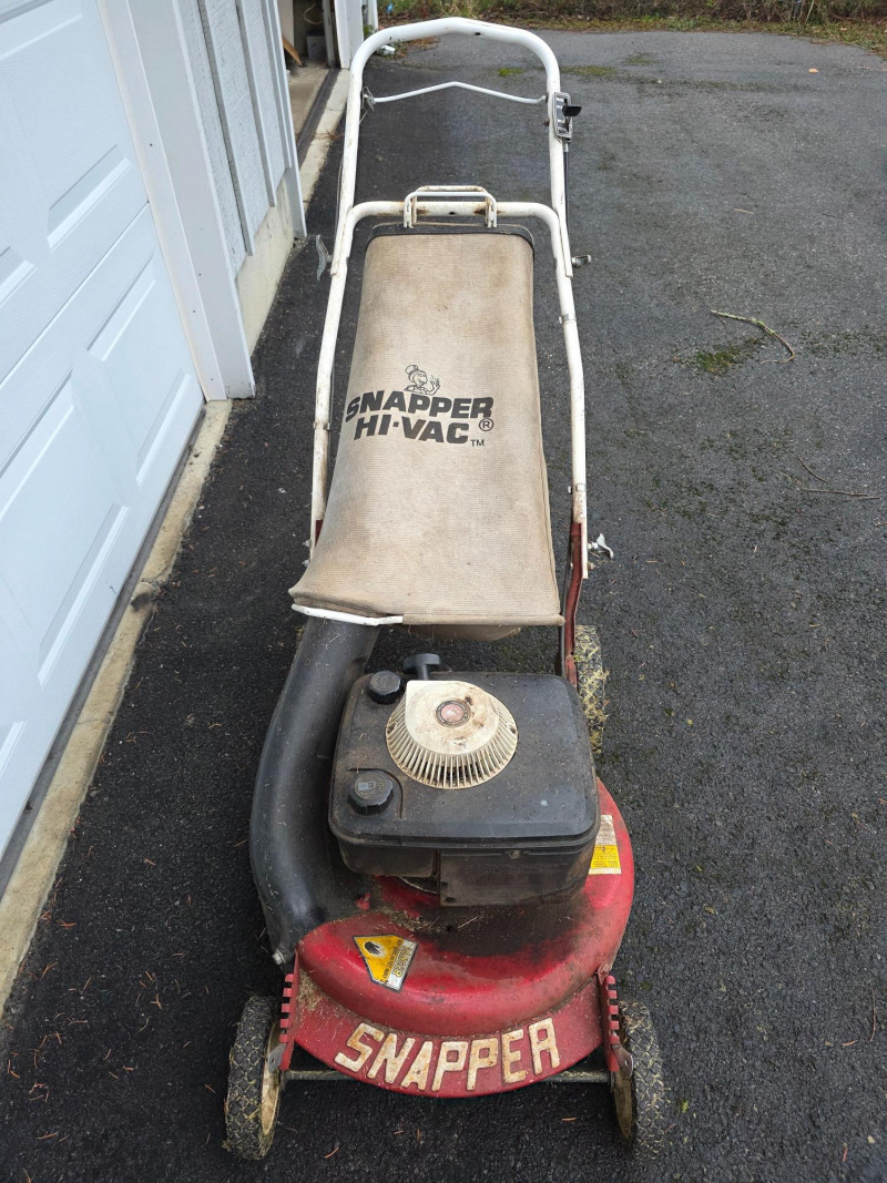 Snapper Hi-Vac Walk-Behind Mower Briggs & Stratton Magnetron Engine These mowers are well-regarded for their distinctive "vacuum-like" suction that efficiently cuts and bags grass clippings for a clean finish Probably late 1970s - early 1980s Engine is free when pulled, but didn't start! Some maintenance may be required