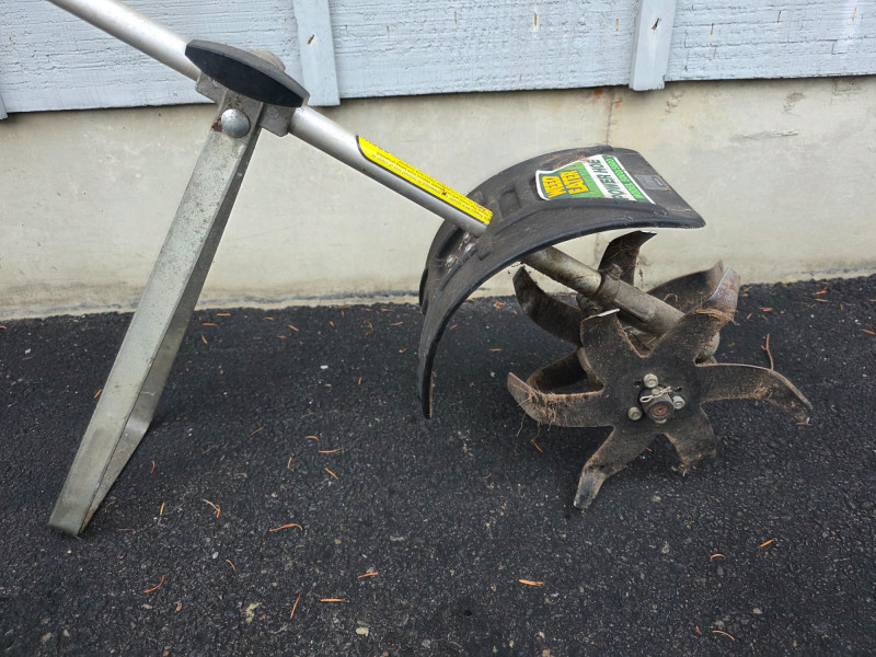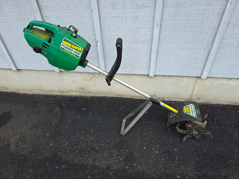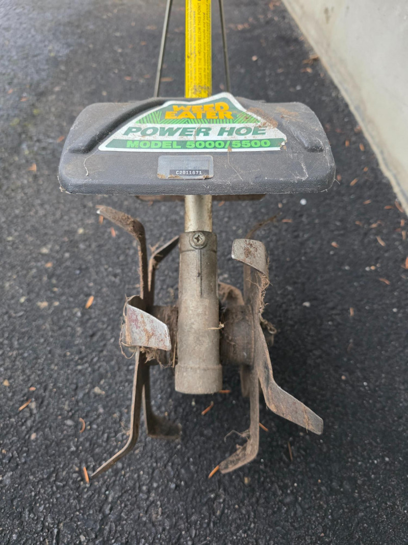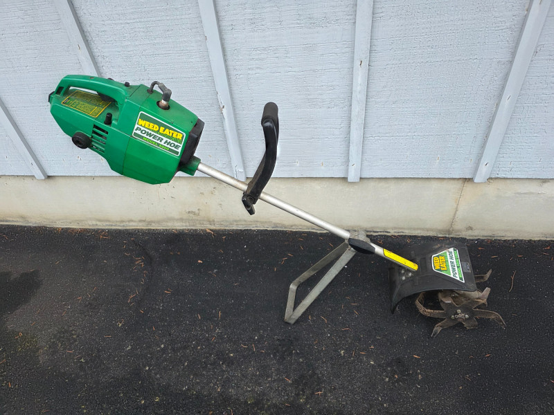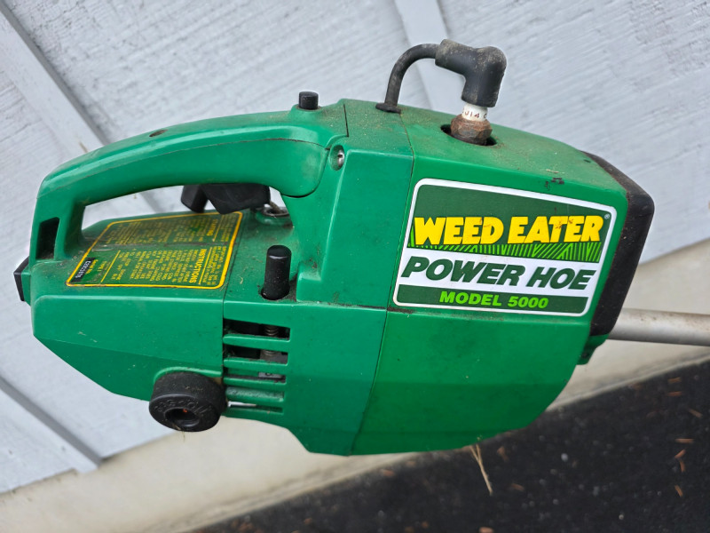 Weed Eater Model 5000 Power Hoe Model #5000 Gas-powered tiller/cultivator for light duty lawn & garden use 10" wide dual tines Engine is free when pulled, but didn't start! Some maintenance may be required