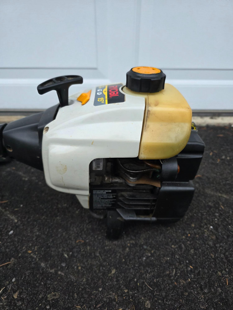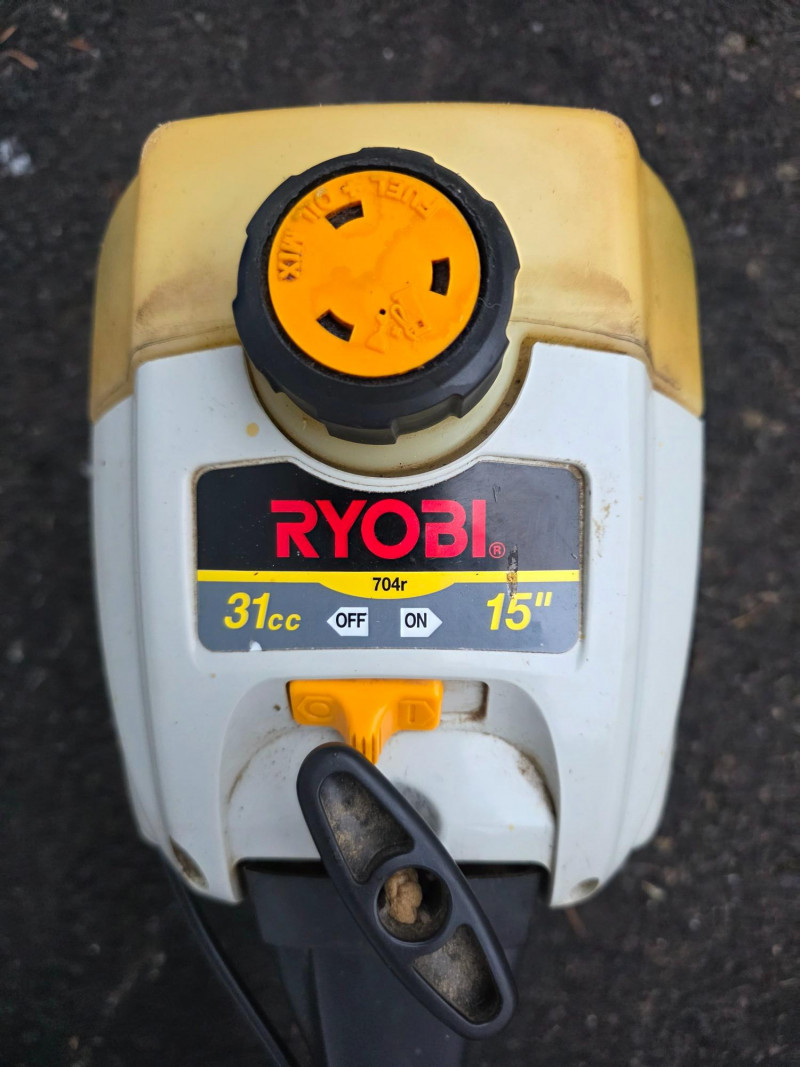 Ryobi 704r 2-Cycle Gas String Trimmer 31cc 15" Plastic trimming head guard is broken Engine is free when pulled, but didn't start! Some maintenance may be required