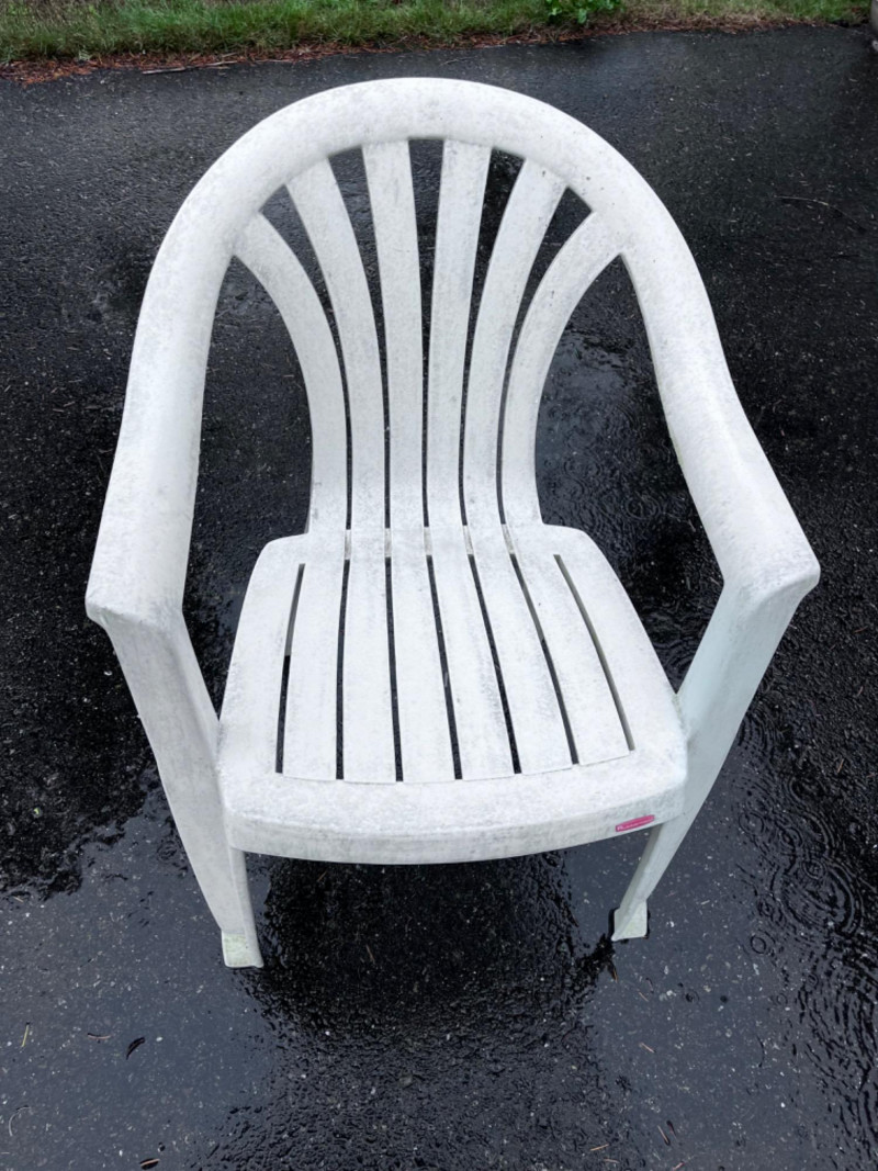 (3) White plastic chairs.
