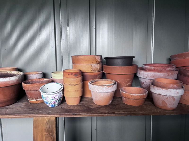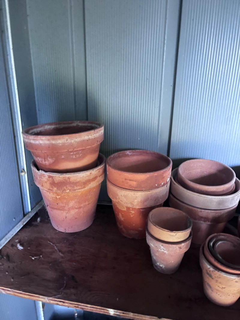 (58) Various Size Clay & (3) Ceramic Pots Largest ceramic pot: 8.5”x7.5” Smallest ceramic pot: 4”x3 1/4” Largest clay pot: 16.5”x12” Smallest clay pot: 2 1/4”x 2 1/4”