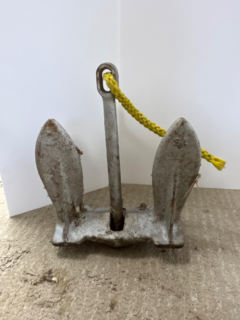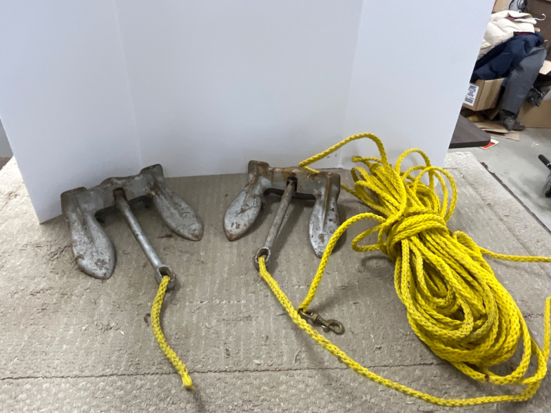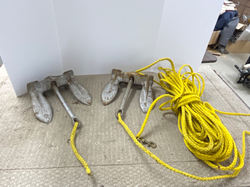 (2) 15lbs Boat Anchors Used-Good condition One includes braided rope with brass snap hook 12.5”T x 10.5”W x 4.5”D