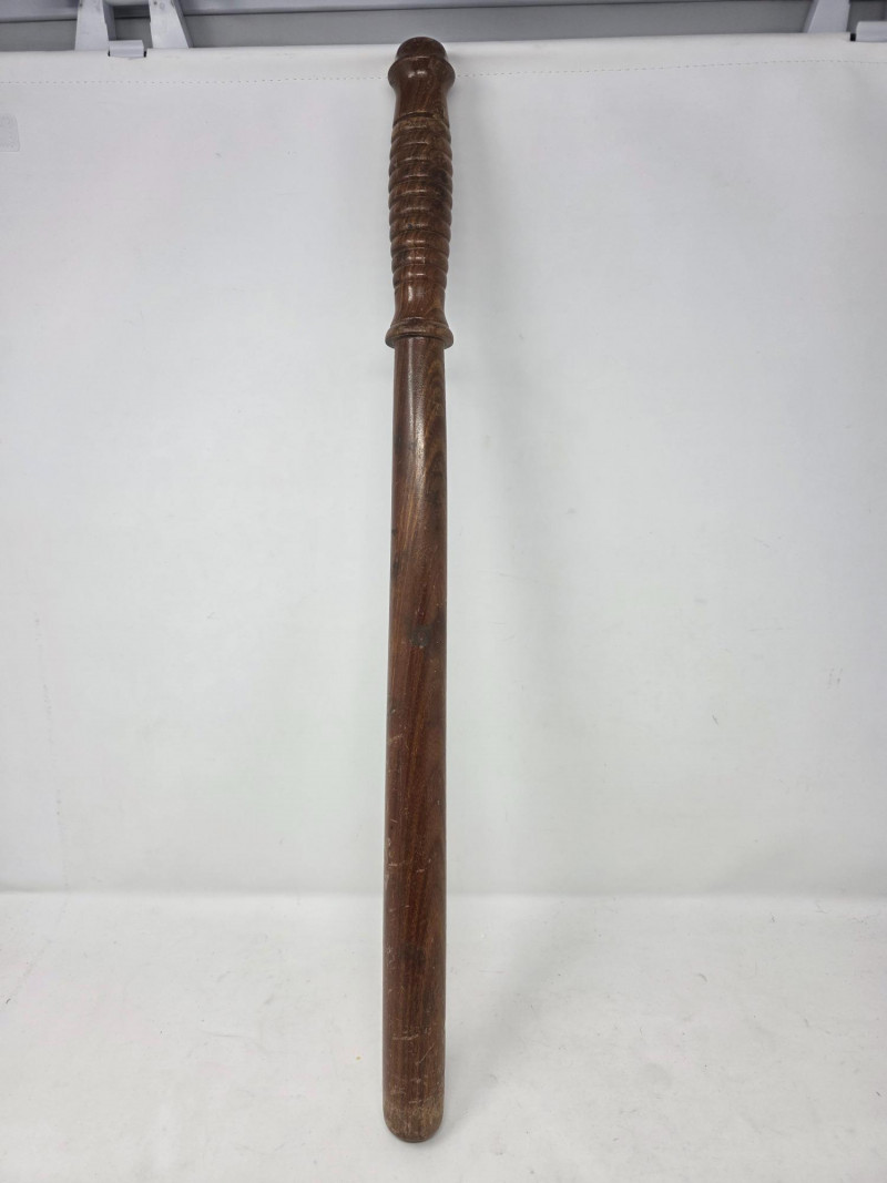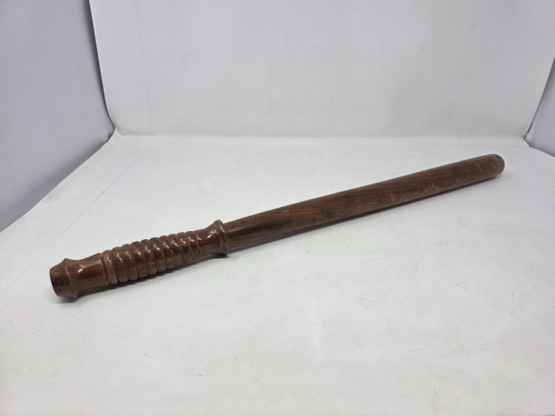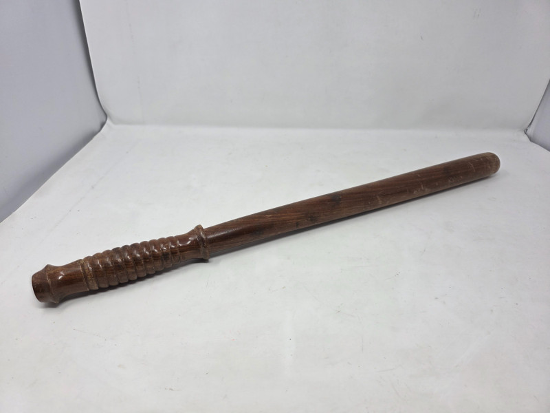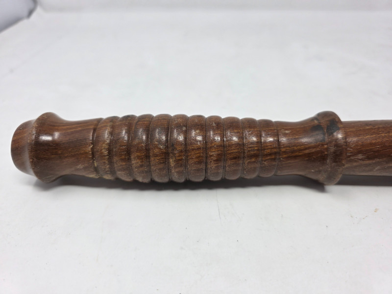 Vintage wooden police baton or "billy club" Also known as a truncheon or nightstick, this hardwood baton has a contoured and grooved handle. They are primarily used by law enforcement officers, security guards, and military personnel as a compliance tool and defensive weapon 23"L Really cool vintage piece!
