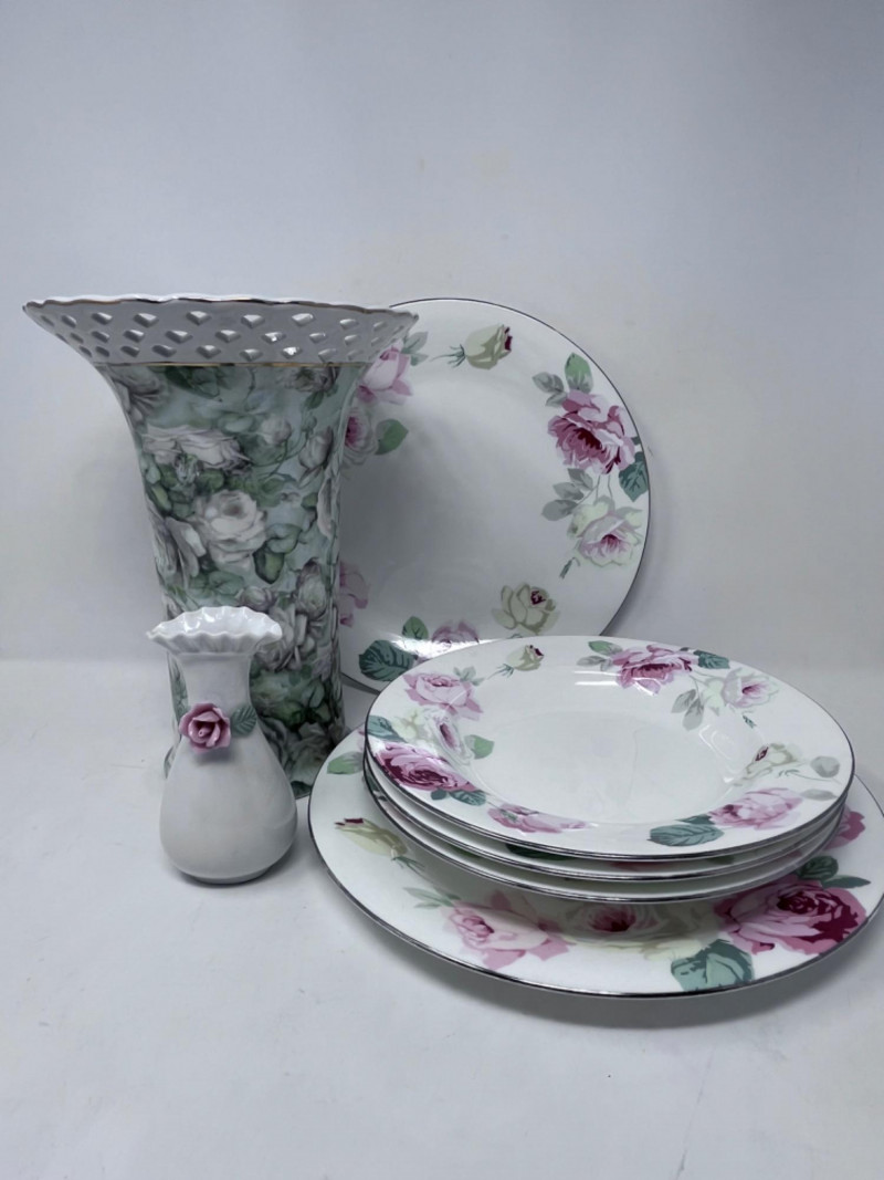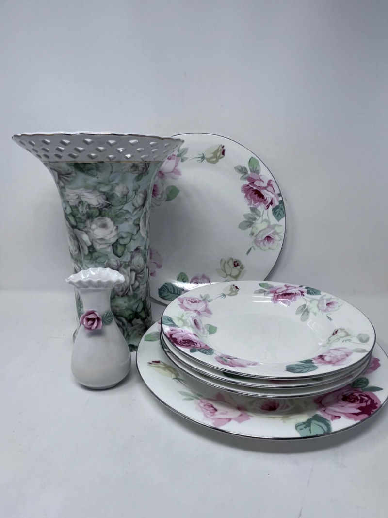 Lot # 205 - Mikasa Bone China Plates & Rose Vases