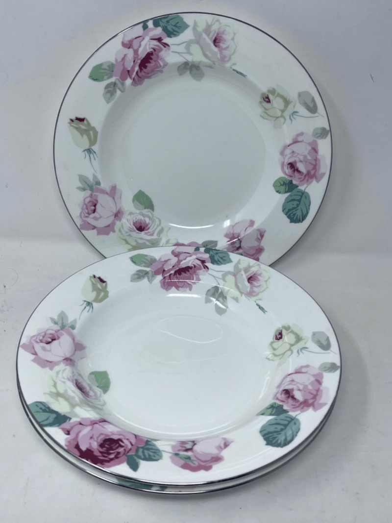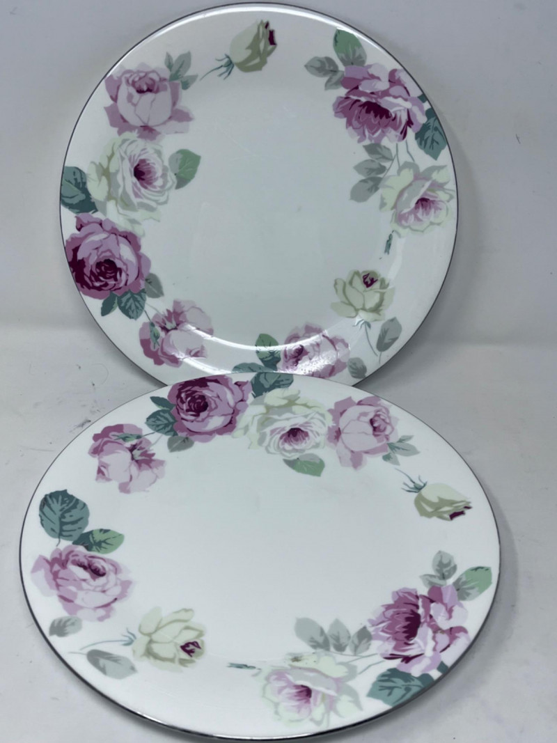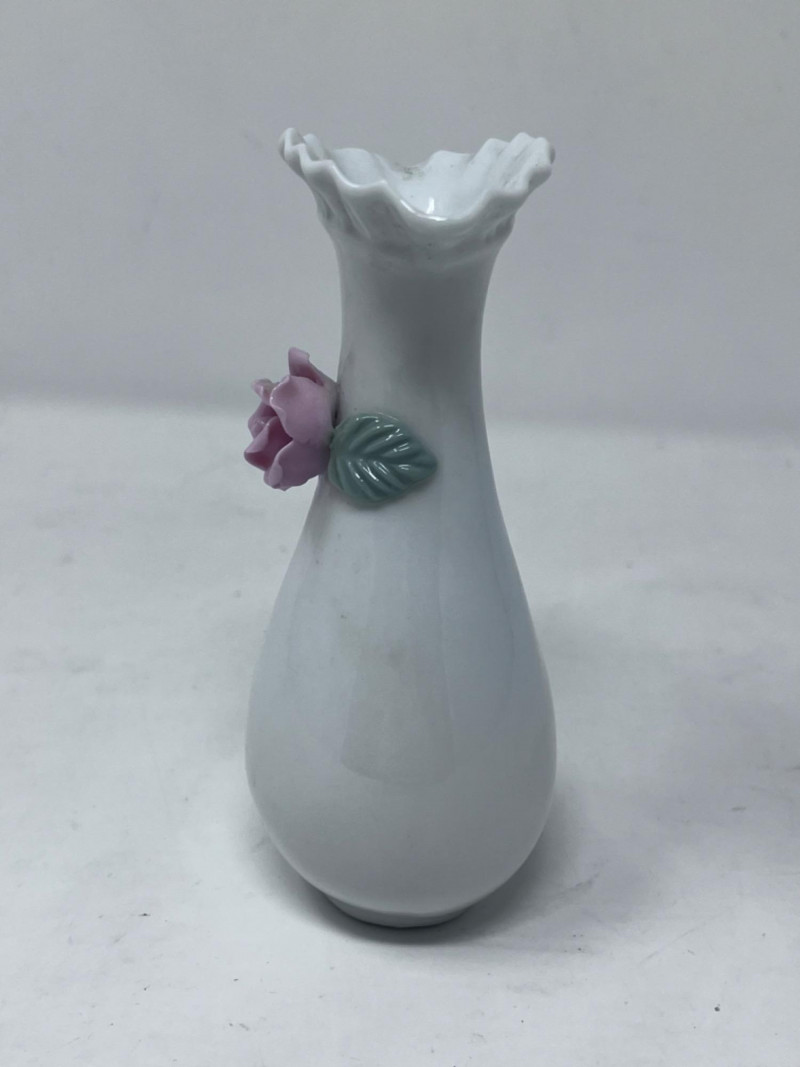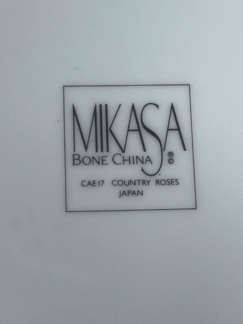 Mikasa Bone China Plates & Rose Vases Mikasa Country Rose pattern Two dinner plates. Bud vase. 2.5”x2”x5” Formalities by Baum Bros. White Rose Chintz china vase.