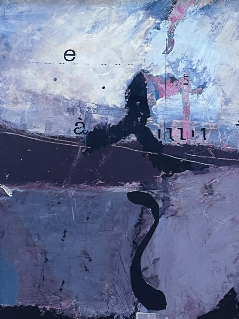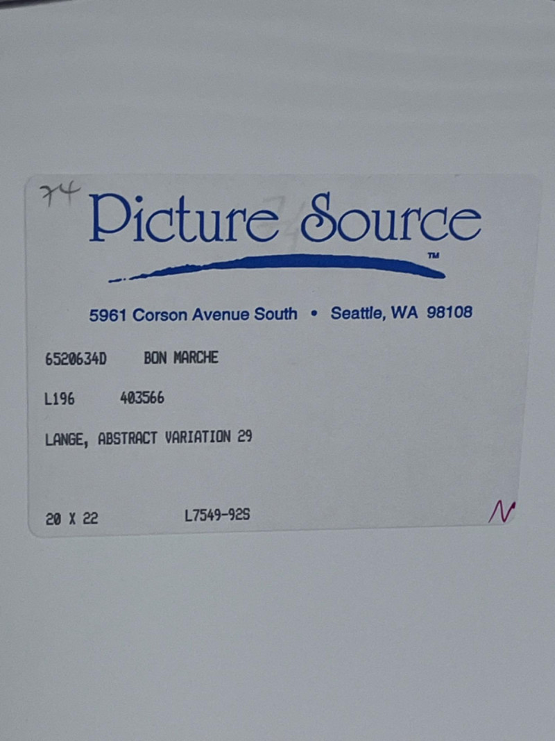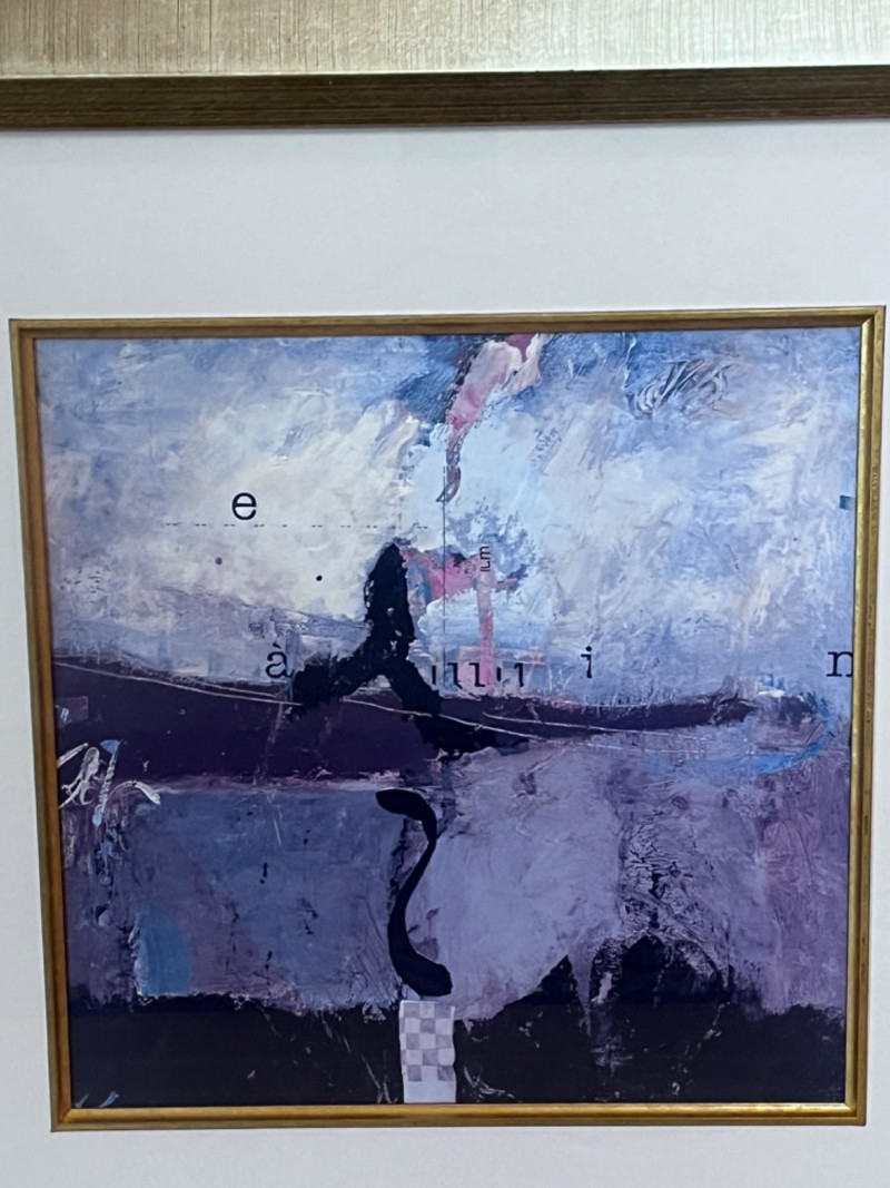Framed and Matted Abstract Art Print From Bon Marche Print with white matting in gold wood frame under glass. 27”x25”