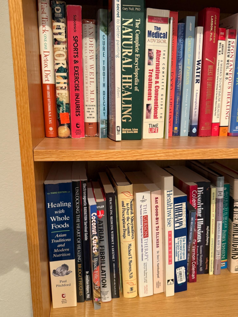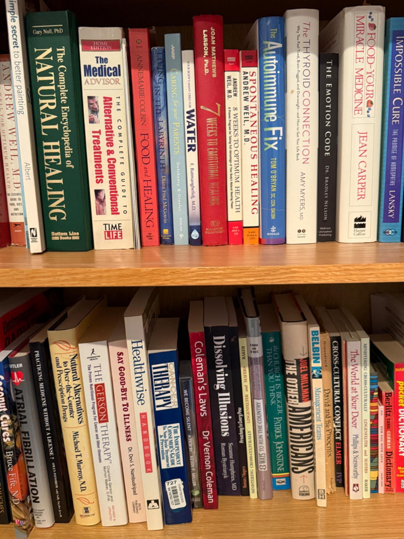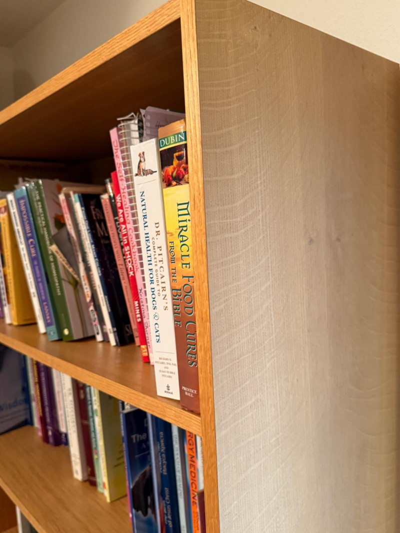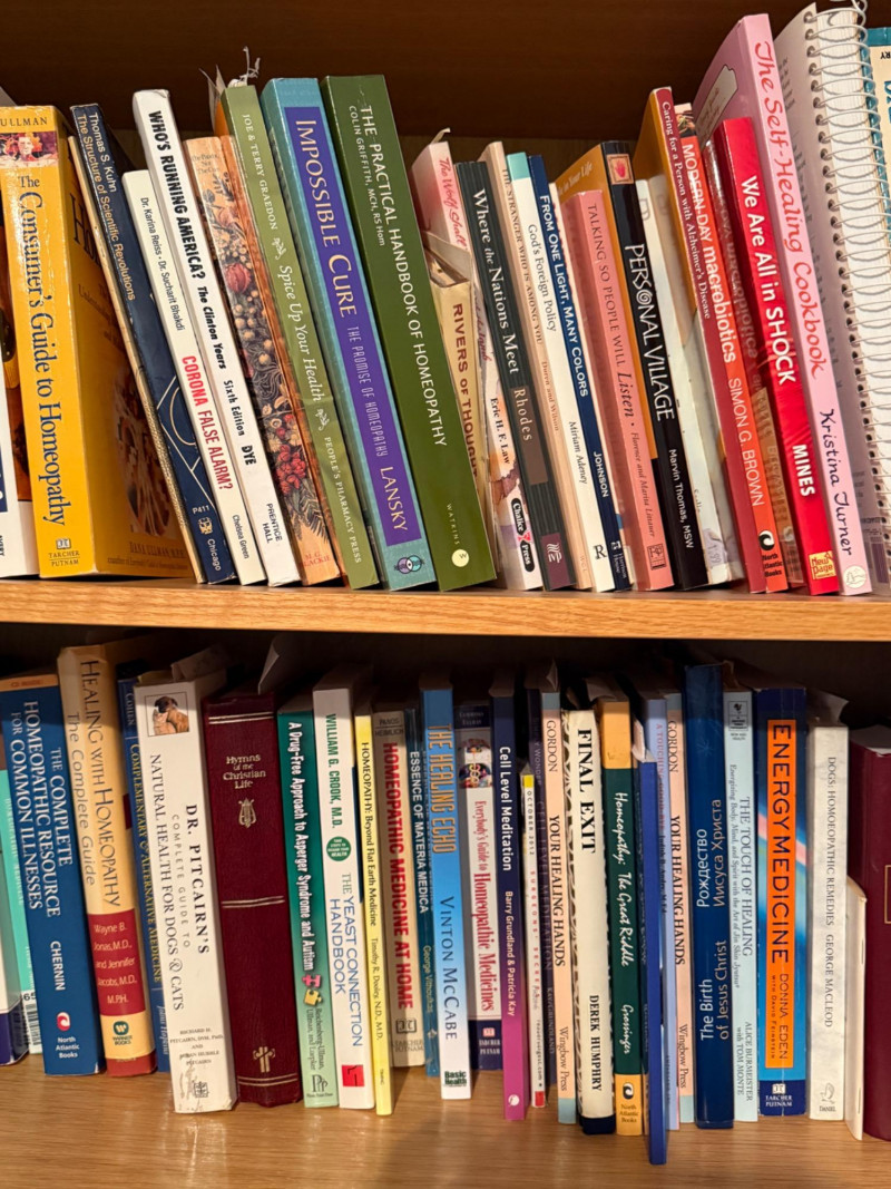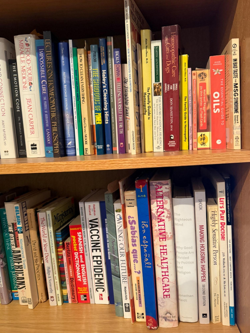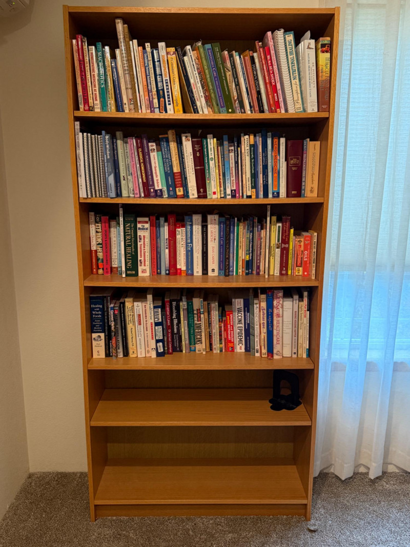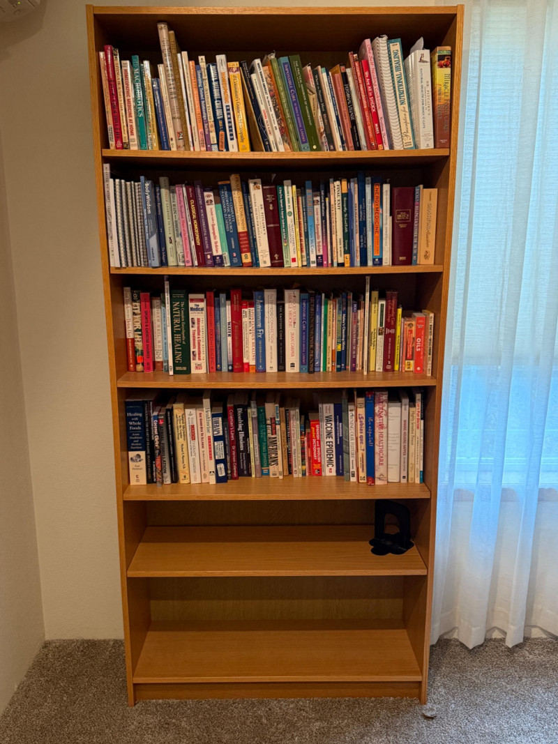 6 Shelf Bookcase Including Books Self help Healthy cooking National issues and politics Pet care Homeopathy Medical Variety reference A diverse and helpful collection of books. 6 shelf bookcase measures 35.5x12.5x76” tall